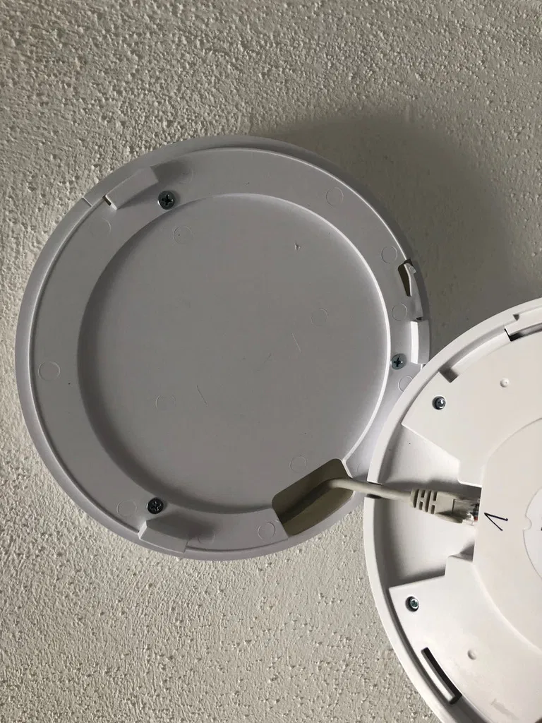 Die Abdeckplatte des Unifi APs ist mit 3 Schrauben (3mmx15mm) an das Druckteil geschraubt.