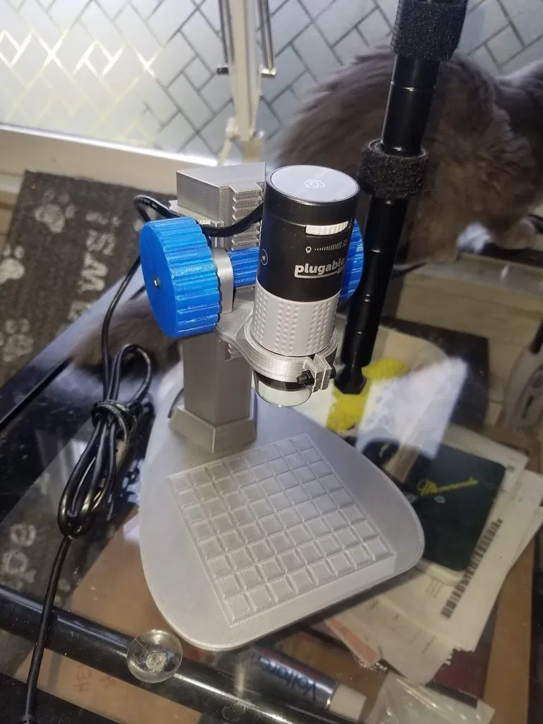 Đây là bản sửa đổi của một giá đỡ kính lúp USB, được thiết kế để in nhanh hơn và sử dụng ít nhựa hơn. Đế có lưới để căn chỉnh và các bộ phận được gia cố để tăng độ bền. Thiết kế mới này giúp bạn có thể hàn vi mạch dễ dàng hơn.