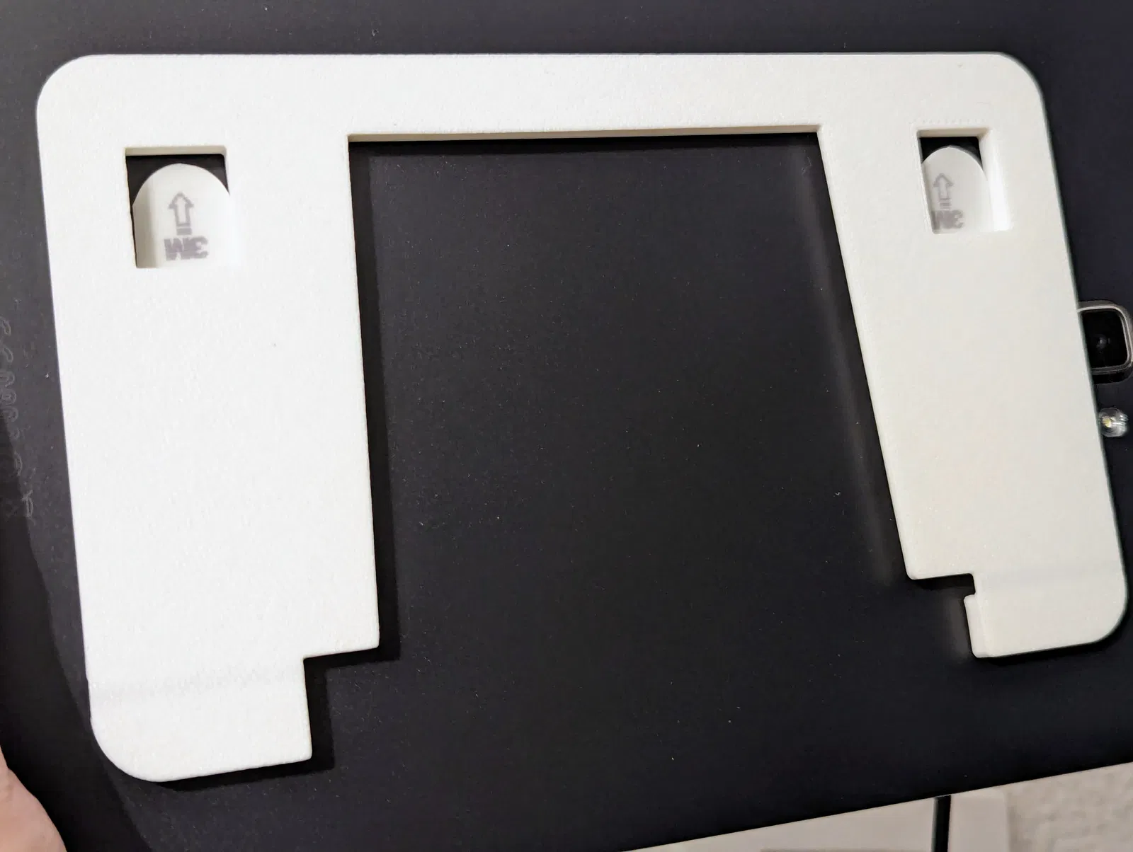 Phiên bản tùy chỉnh của giá treo máy tính bảng từ @HansSchulz, sử dụng miếng dán Command của 3M thay vì băng keo Tesa. Món đồ này rất tiện lợi để treo máy tính bảng của bạn lên tường mà không cần khoan hay dùng đinh.
