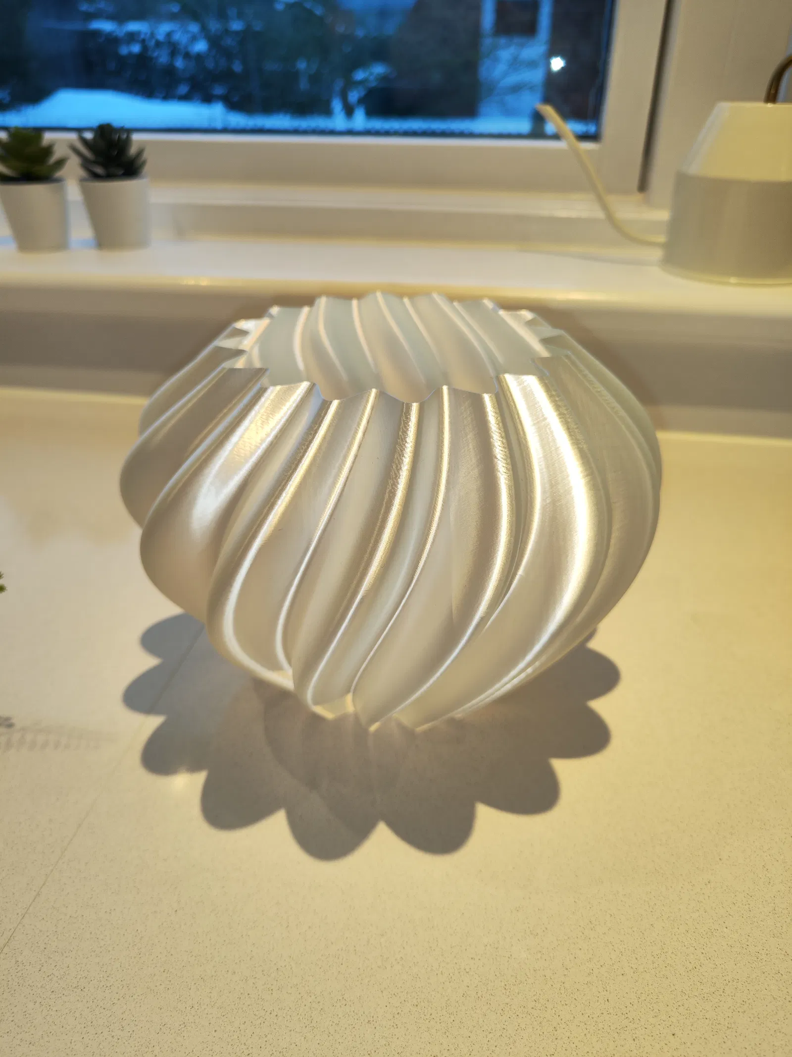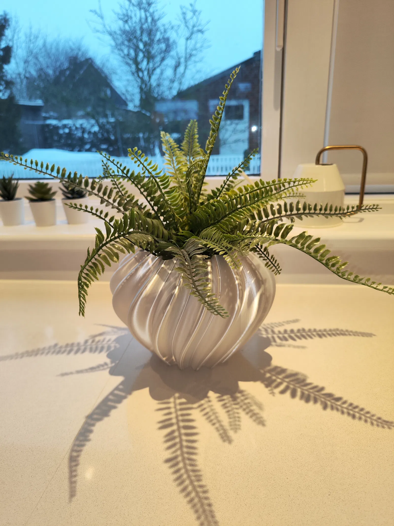 Chiếc bình này có thiết kế hình gợn sóng độc đáo, mang đến vẻ đẹp mềm mại và uyển chuyển cho không gian của bạn. Thích hợp để trang trí hoặc cắm hoa.