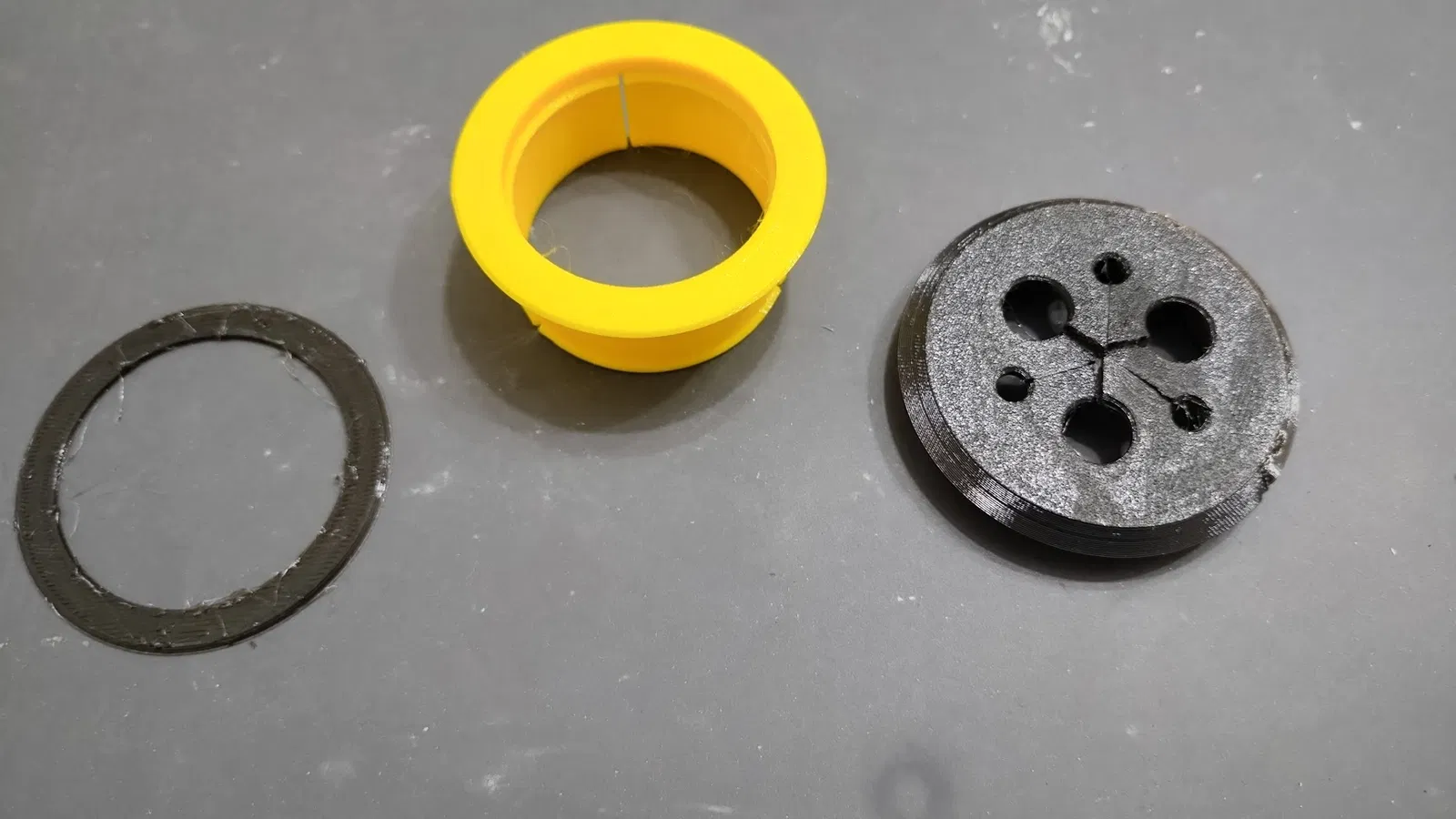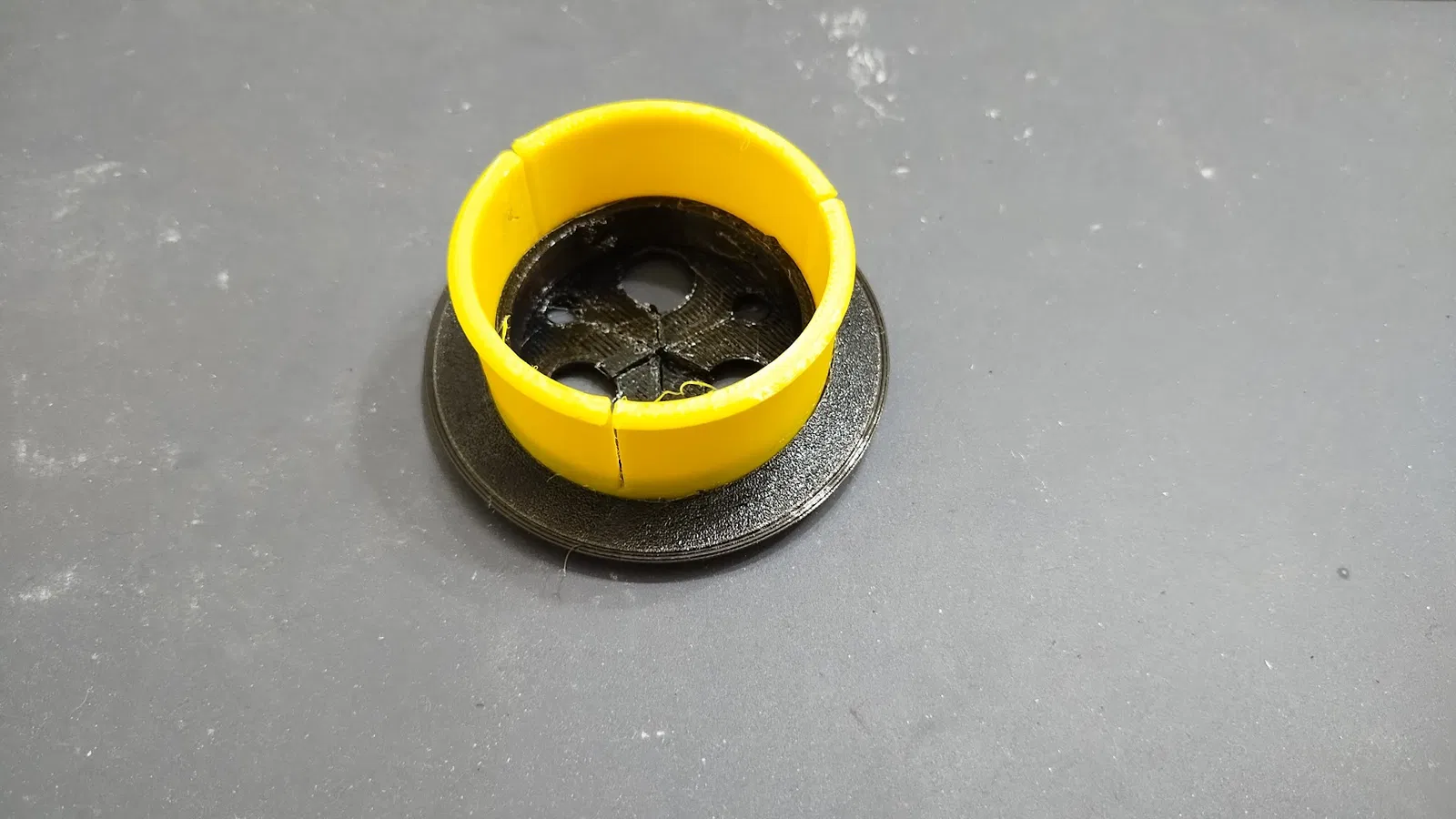 Ống luồn dây cáp 3 mảnh, làm từ PETG và TPU, có gioăng chống trầy và nắp tùy chỉnh cho dây cáp. Đi kèm file Fusion 360 để tùy chỉnh đường kính lỗ và độ dày bàn. Phù hợp cho mặt bàn dày ¾" và lỗ 1 ¾".