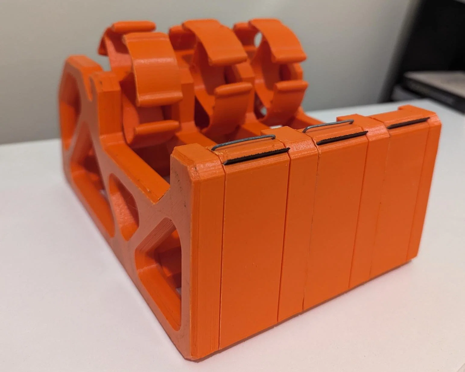 Chế lại từ máy cắt băng của Miguel M. để dùng chốt gỗ và có khe dẫn hướng. Phiên bản này có thiết kế dạng module, dễ dàng tùy chỉnh và lắp ráp, phù hợp cho nhiều nhu cầu sử dụng khác nhau. Bạn có thể in 3D ngay tại nhà với các file STL có sẵn.