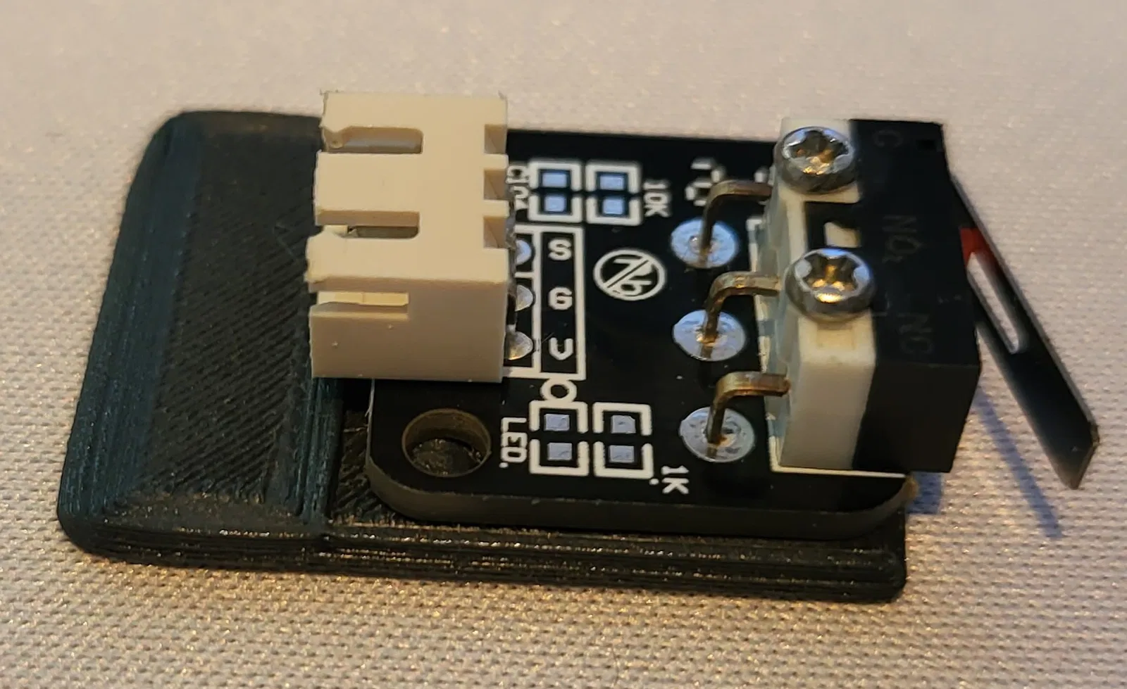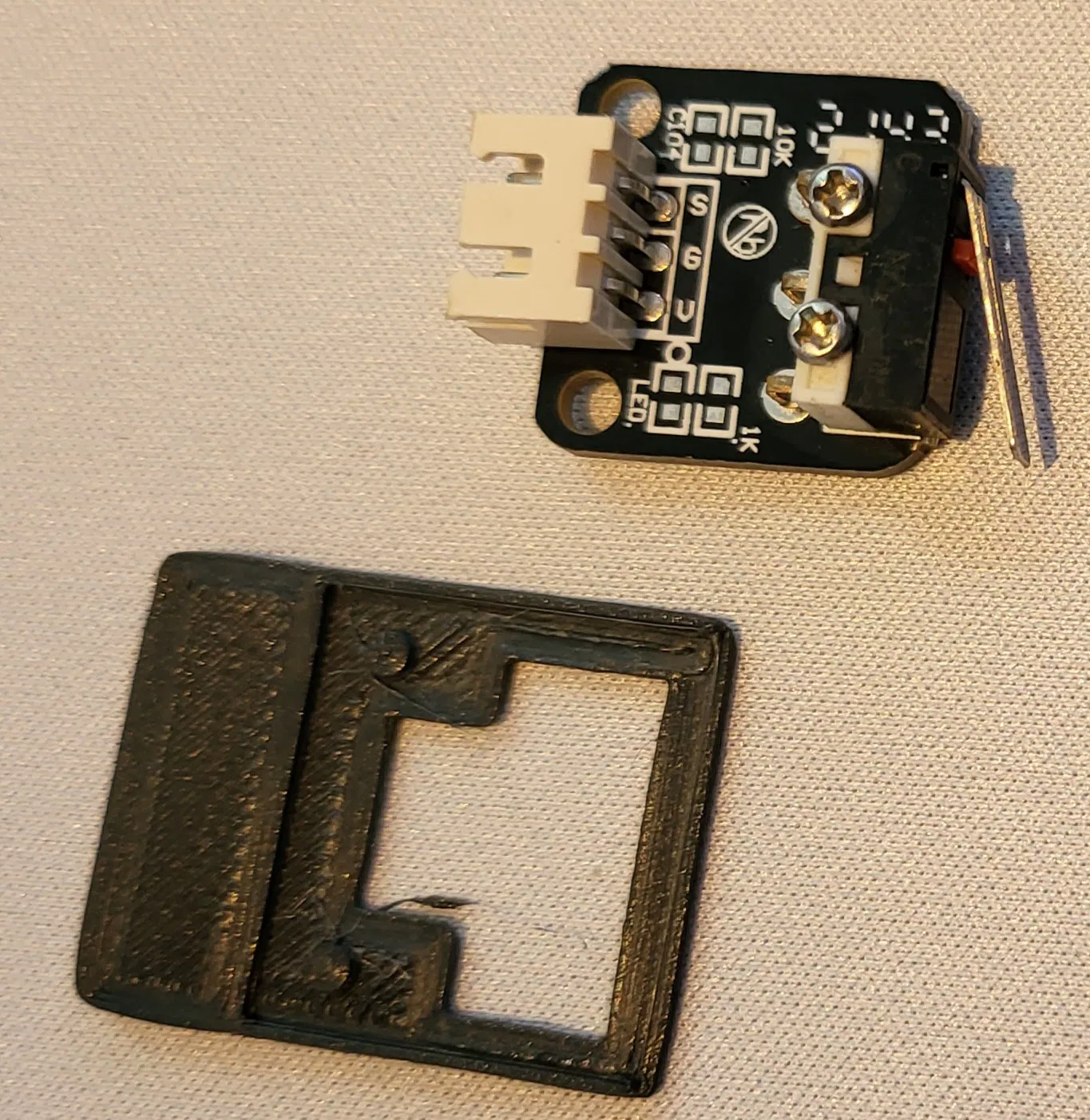 Cái công tắc giới hạn hành trình X của tui bị hư, nên tui đặt cái mới về, mà nó lại nhỏ hơn cái cũ kha khá. Nên lúc công tắc giới hạn hành trình vẫn còn xài được, tui nhanh chóng thiết kế một cái miếng độn để làm cho cái mới bằng với cái cũ.