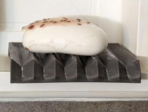 Một cái khay xà bông đơn giản. Được thiết kế để đặt trên gờ. Có các rãnh để xà bông/nước có thể thoát ra, với luồng không khí dồi dào để giữ cho xà bông không bị sũng nước.