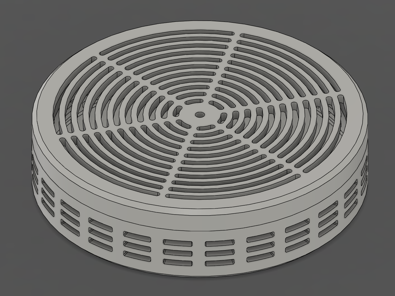 Tui hay trữ thuốc phóng rocket với hắc phiến trong mấy cái lọ 1000ml này. Mấy cái lọ này có nắp đôi tiện lợi với đậy cũng khá kín, nên tui thiết kế thêm cái hộp này để giữ cho hóa chất của tui được khô ráo. Nó gắn vào nắp lọ từ bên trong và được thiết kế khá gọn gàng, xài được cho nhiều loại. Kích thước của cái hộp sau khi ráp xong là 70mm x 17.5mm. Tui có mấy cái o-ring cũ, nên tui làm thêm chỗ lõm để bỏ zoăng vào cho nó kín mấy con ốc, dù không chắc là nó có cần thiết hay không… Tui cũng làm thêm mấy lỗ thường nữa, phòng khi mấy ông bà không có o-ring.