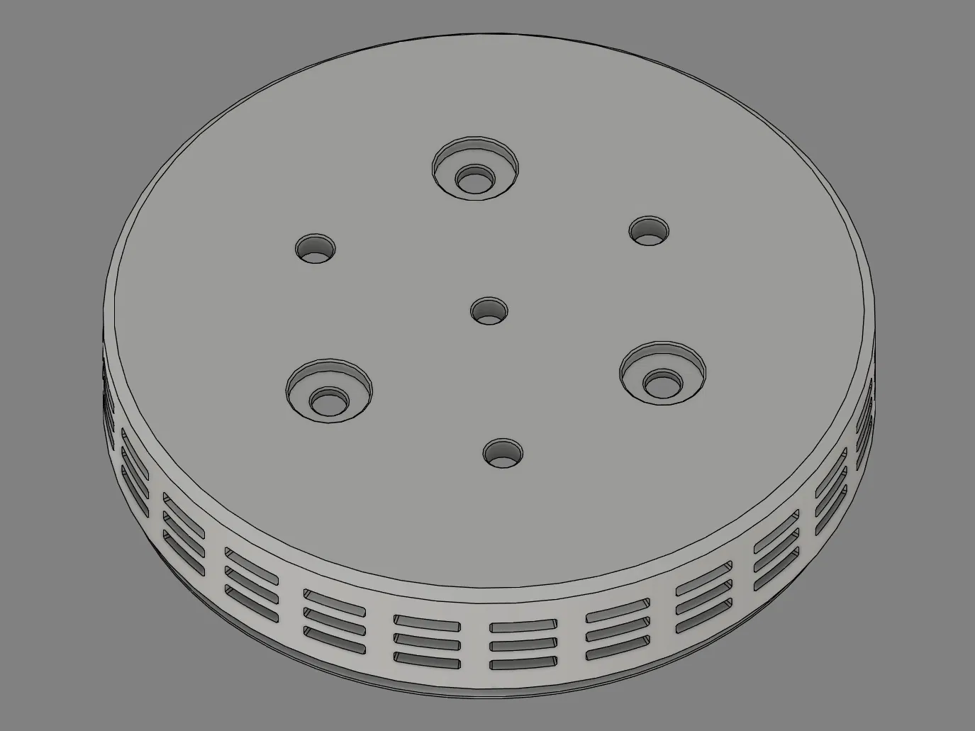 Tui hay trữ thuốc phóng rocket với hắc phiến trong mấy cái lọ 1000ml này. Mấy cái lọ này có nắp đôi tiện lợi với đậy cũng khá kín, nên tui thiết kế thêm cái hộp này để giữ cho hóa chất của tui được khô ráo. Nó gắn vào nắp lọ từ bên trong và được thiết kế khá gọn gàng, xài được cho nhiều loại. Kích thước của cái hộp sau khi ráp xong là 70mm x 17.5mm. Tui có mấy cái o-ring cũ, nên tui làm thêm chỗ lõm để bỏ zoăng vào cho nó kín mấy con ốc, dù không chắc là nó có cần thiết hay không… Tui cũng làm thêm mấy lỗ thường nữa, phòng khi mấy ông bà không có o-ring.
