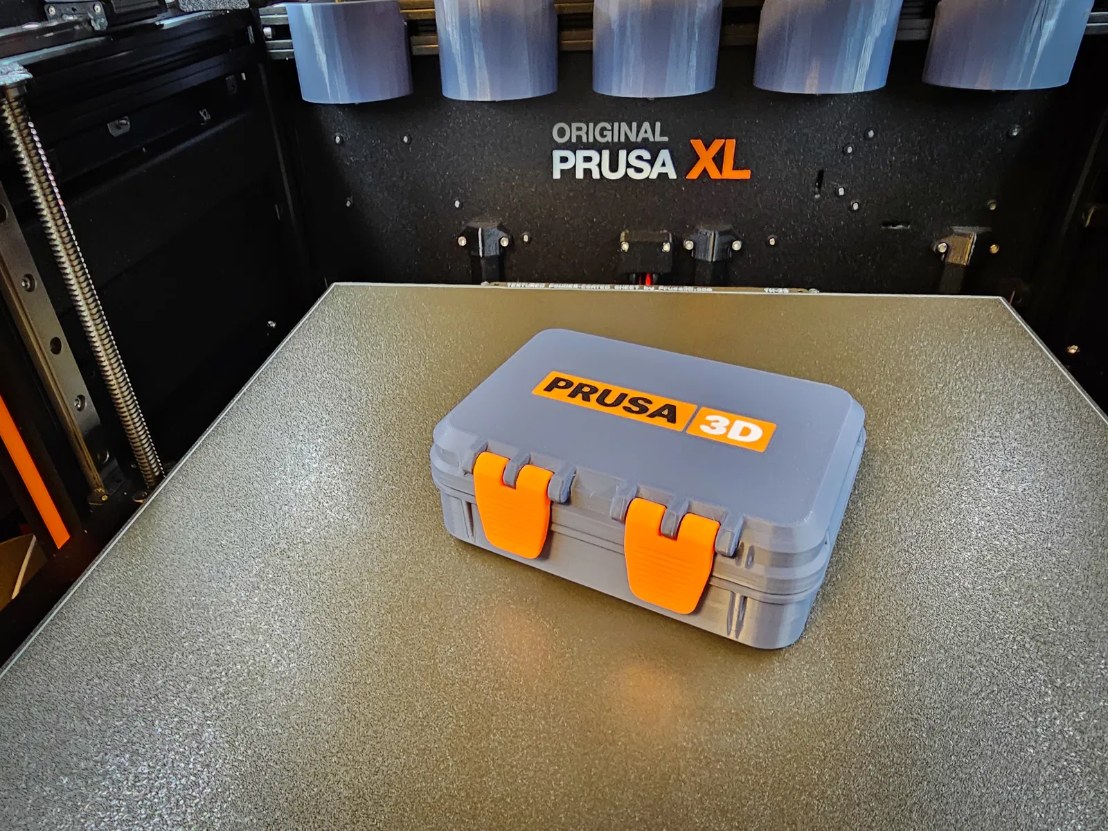 Cái hộp in-place này được thiết kế để in trên chiếc Original Prusa XL, kết hợp nhiều loại vật liệu khác nhau. Các bộ phận của hộp giờ được tách ra thành các khối riêng lẻ và có thể gán vật liệu dễ dàng hơn. Ngoài việc sơn các chốt theo màu bạn muốn, phần còn lại là chọn vật liệu.