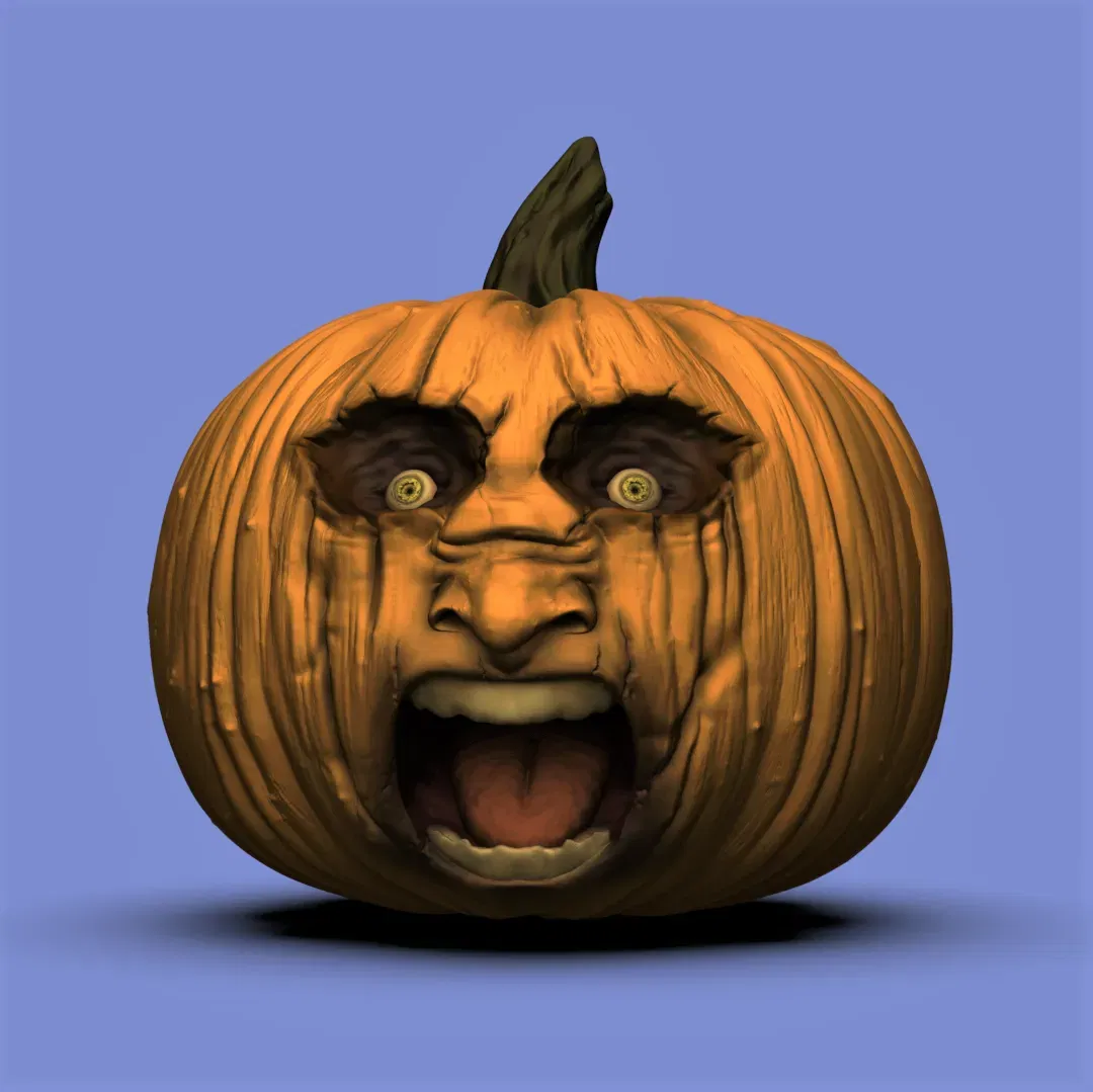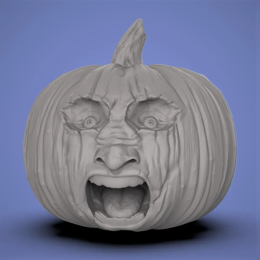 Tác phẩm điêu khắc 3D của một quả bí ngô xấu xí đáng sợ.
