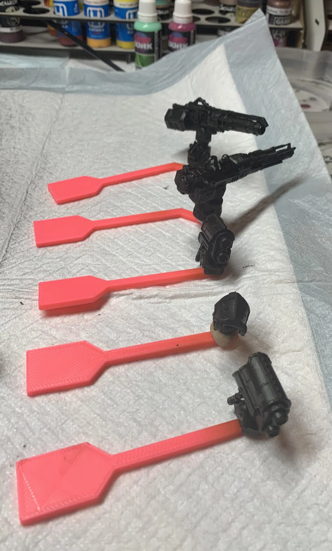 Dụng cụ giữ các bộ phận nhỏ khi phun sơn airbrush. Thiết kế để in nhanh, có hai loại: thẳng và gập 45 độ, tối ưu cho việc phun sơn chi tiết.