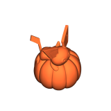 Một bức tượng của Pichu đang chơi đùa trên một quả bí ngô.