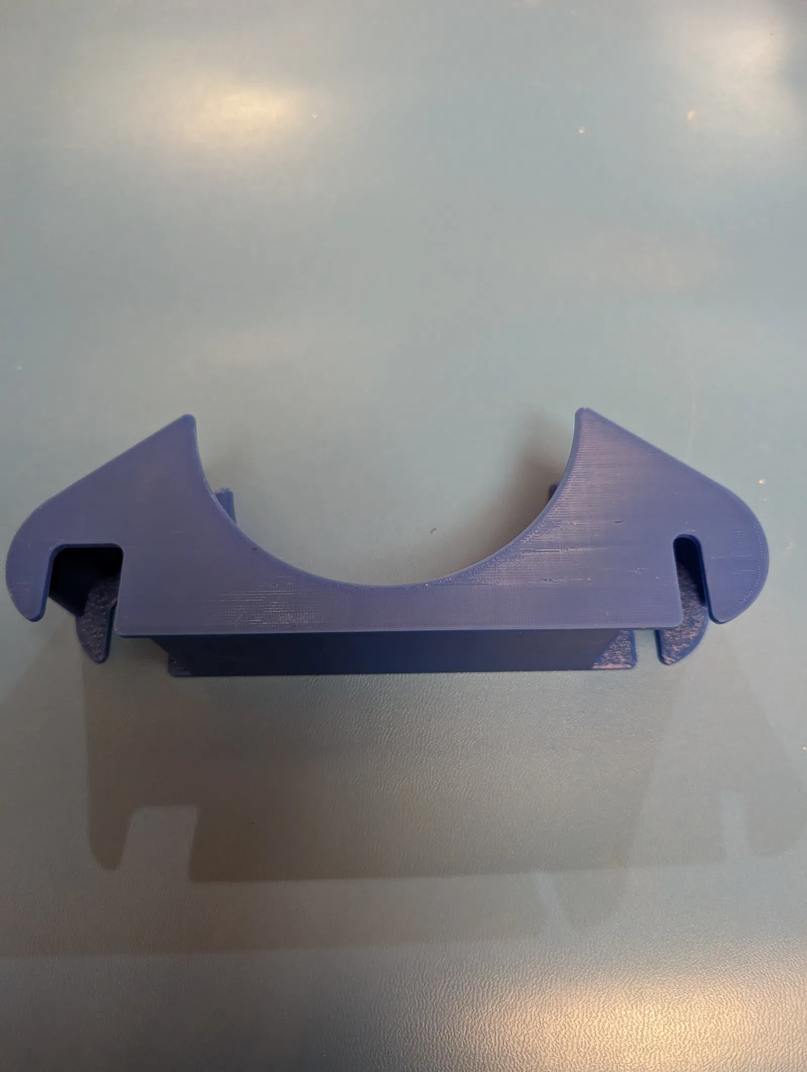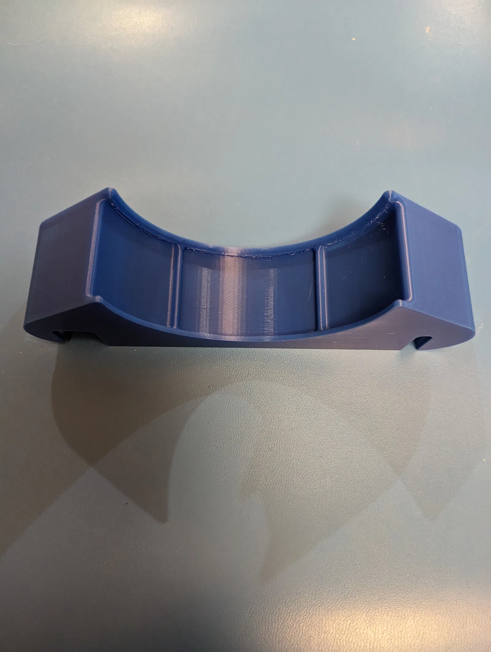 Đây là giá đỡ cuộn/lô filament mini (250 gram) cho hộp hút ẩm của tôi. Nó nằm trên thanh ren 5/16 inch mà tôi dùng để đỡ các cuộn, và có các rãnh khoét để tránh các con lăn cuộn kích thước tiêu chuẩn và bù trừ cho sự thay đổi khoảng cách thanh ren. Nó cũng có các núm tròn nhỏ để giảm ma sát với các cuộn mini, và các cạnh hơi nhô lên để giữ các cuộn không chạm vào nhau.