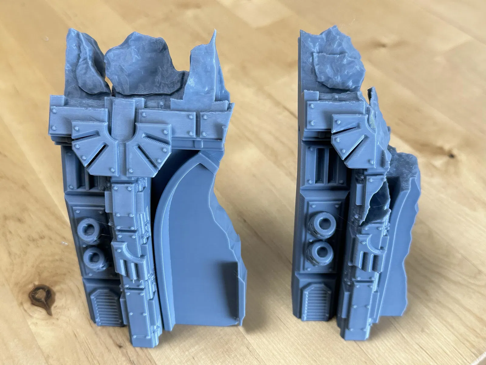 Các chi tiết chụp bịt đầu tàu không gian kiểu Gothic bị hỏng, được thiết kế lại để chiếm ít không gian hơn trên bàn đấu. In tốt bằng PLA với các cài đặt khác nhau.