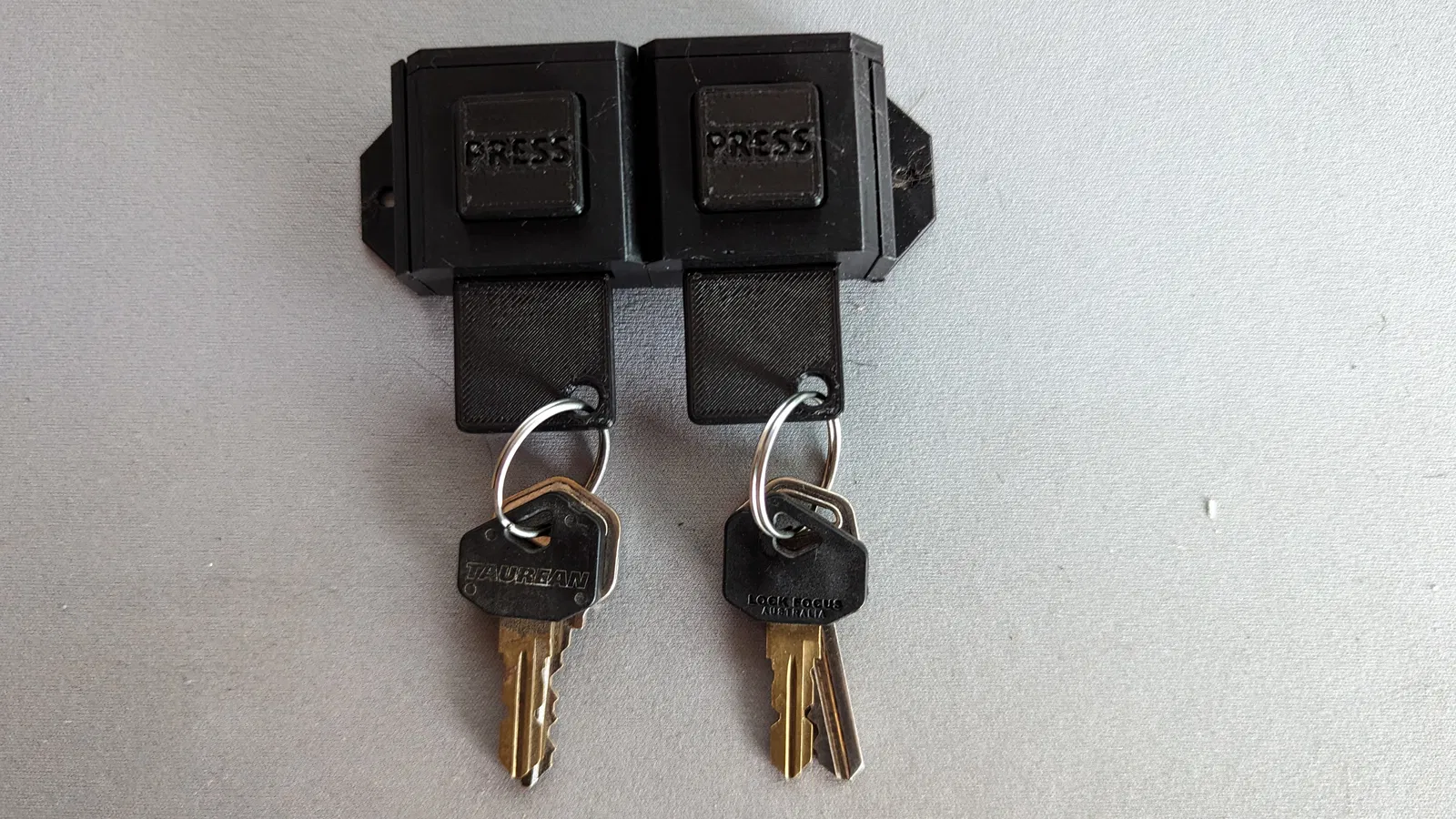 Cái này được tạo ra cho một khách sạn nhỏ để sắp xếp chìa khóa và số phòng được thêm vào móc chìa khóa, nhưng không gian này có thể được sử dụng để thêm văn bản để ghi nhãn các chìa khóa. Móc chìa khóa và các bộ phận của giá đỡ cũng có thể được mã hóa màu để giúp xác định chìa khóa nào làm gì.