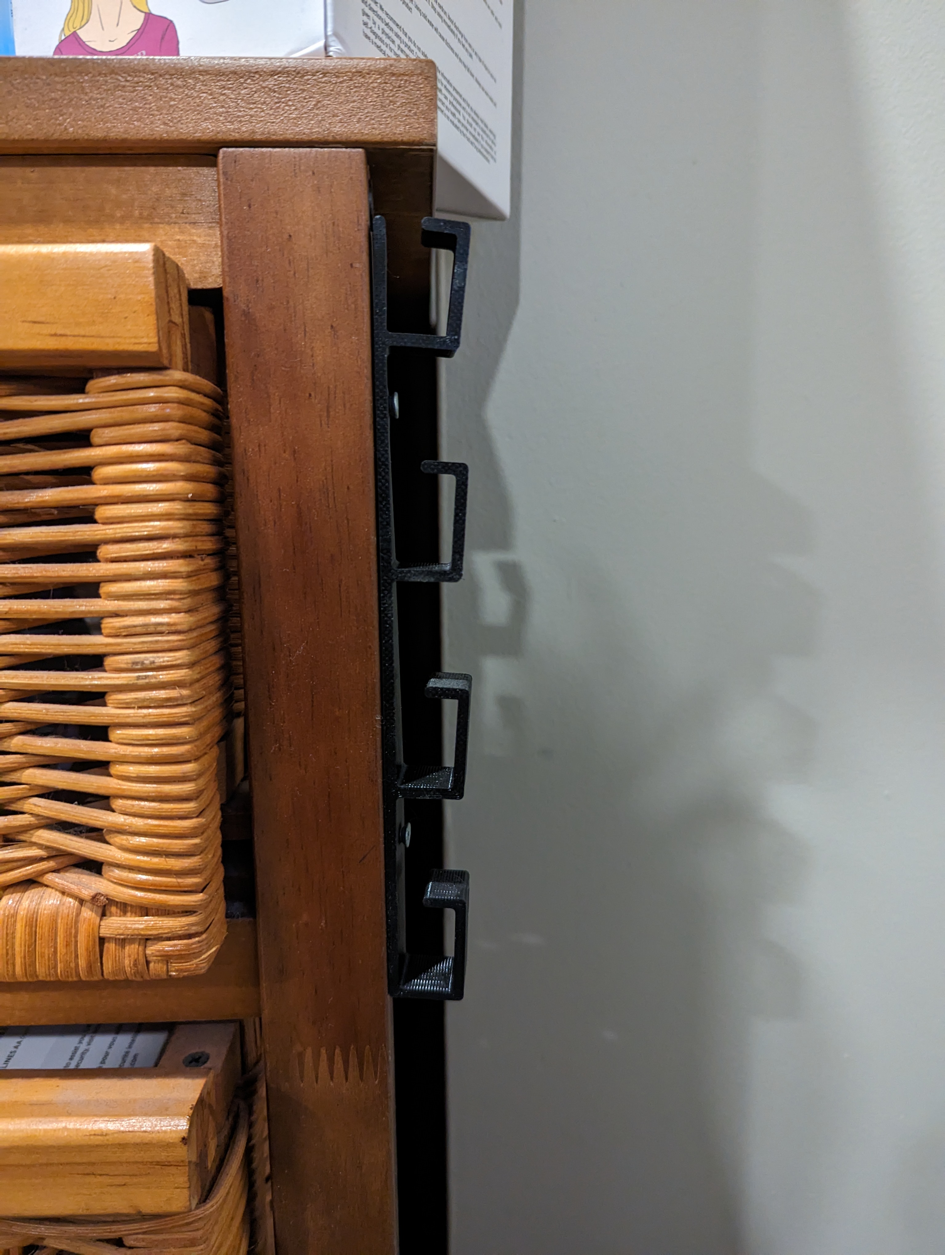 Một cái móc treo nón đơn giản, có thể treo nhiều nón cùng lúc, với các lỗ để bắt vít cỡ #6. Phù hợp để treo trong tủ quần áo.