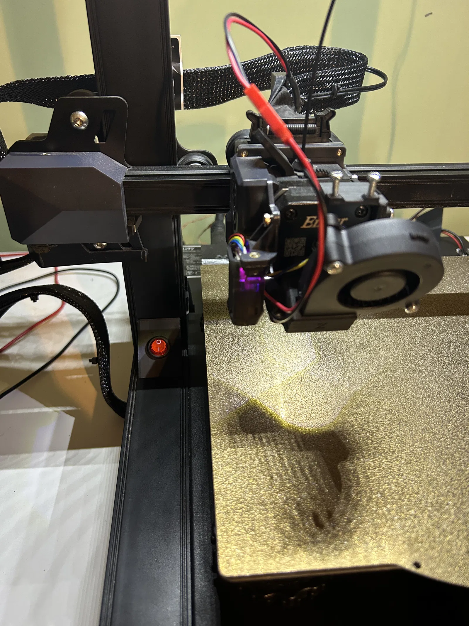 Tui có gắn thêm cái module LED cho cái extruder. Sau khi làm xong dây điện, tui mới nhận ra là quên gắn cái công tắc vô :)