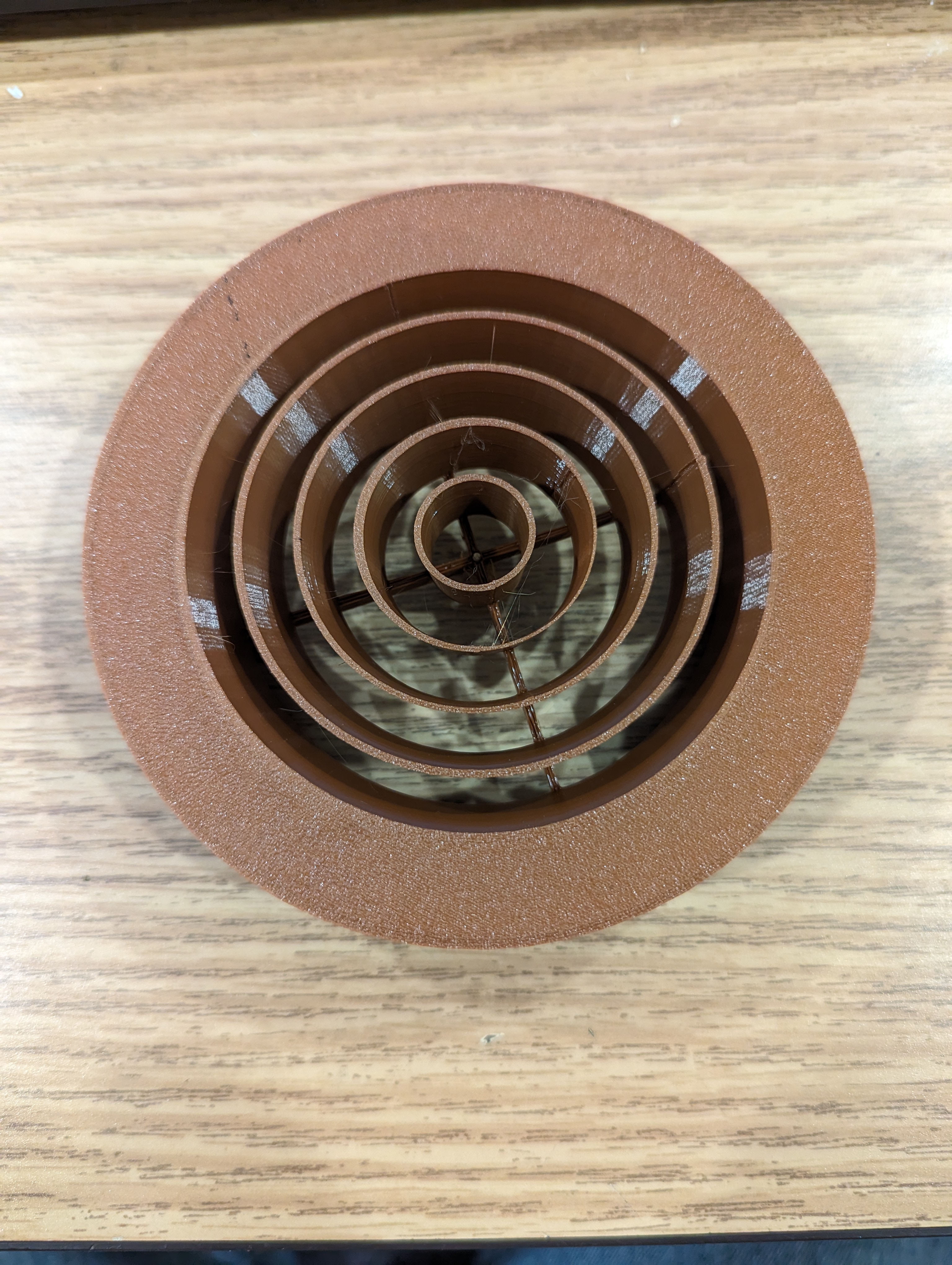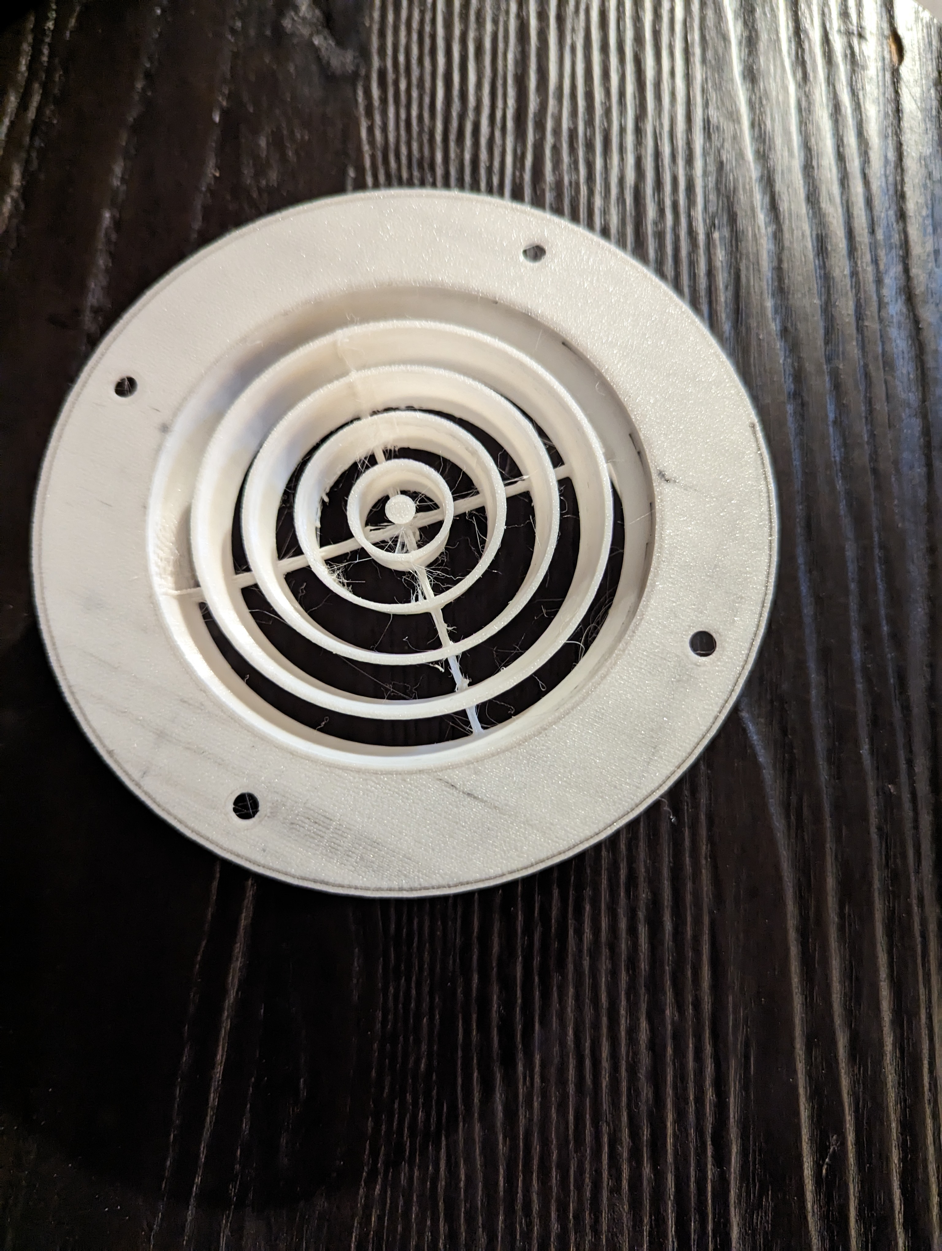 Đây là nắp thông hơi đồng tâm cho ống thông hơi mềm 4 inch. Tôi đã sử dụng nó để gắn trên tường RV của mình. Nó có thể được sử dụng ở bất kỳ đâu, nhưng TUYỆT ĐỐI KHÔNG SỬ DỤNG CHO ỐNG THÔNG HƠI MÁY SẤY QUẦN ÁO!! Nếu bạn gắn nó vào ống thông hơi máy sấy quần áo, nó sẽ bị tắc bởi xơ vải và có thể gây cháy! Bất kỳ tình huống luồng không khí nào khác đều ổn. Đường kính ngoài của vòng là 97mm và đường kính trong là 94mm. Nó có thể dễ dàng được sửa đổi để phù hợp với hầu hết mọi kích thước khi bạn cắt mô hình. Sẽ in mà không cần hỗ trợ.