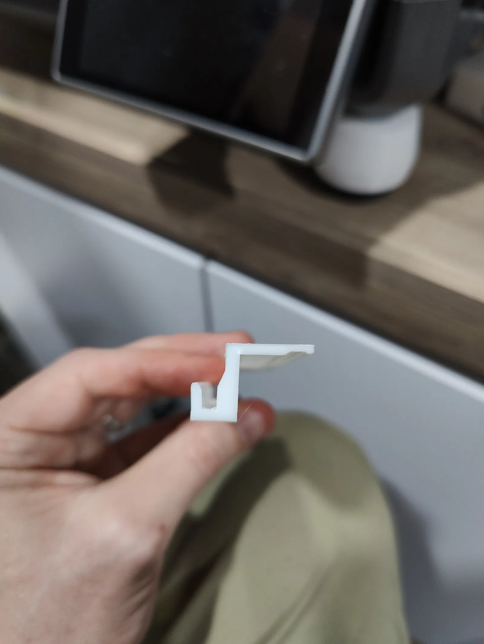 Tui không muốn tháo cửa ra hay để cửa mở hoài nên tui đã thiết kế mấy cái cục chặn cửa có thể kẹp vô này. Nó có khe thông gió để thoát khí và có kẹp tích hợp sẵn luôn, nên mình có thể khóa cửa lại mà vẫn mở ra dễ dàng nếu cần.