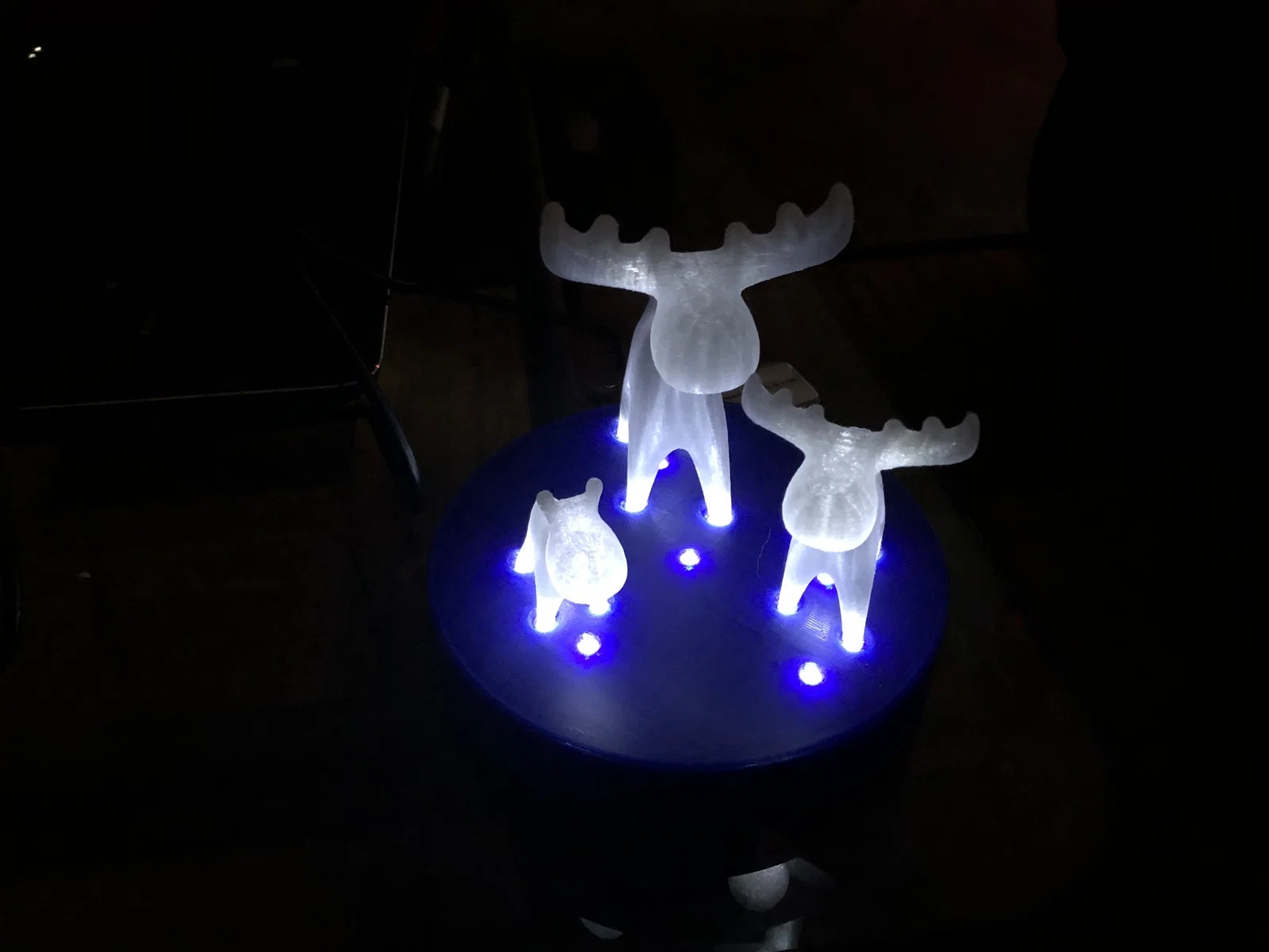 Một đế tùy chỉnh, được tạo ra để tôi có thể sử dụng Circuit Python để thắp sáng đèn LED dưới các mẫu trang trí hươu được liên kết bên dưới.