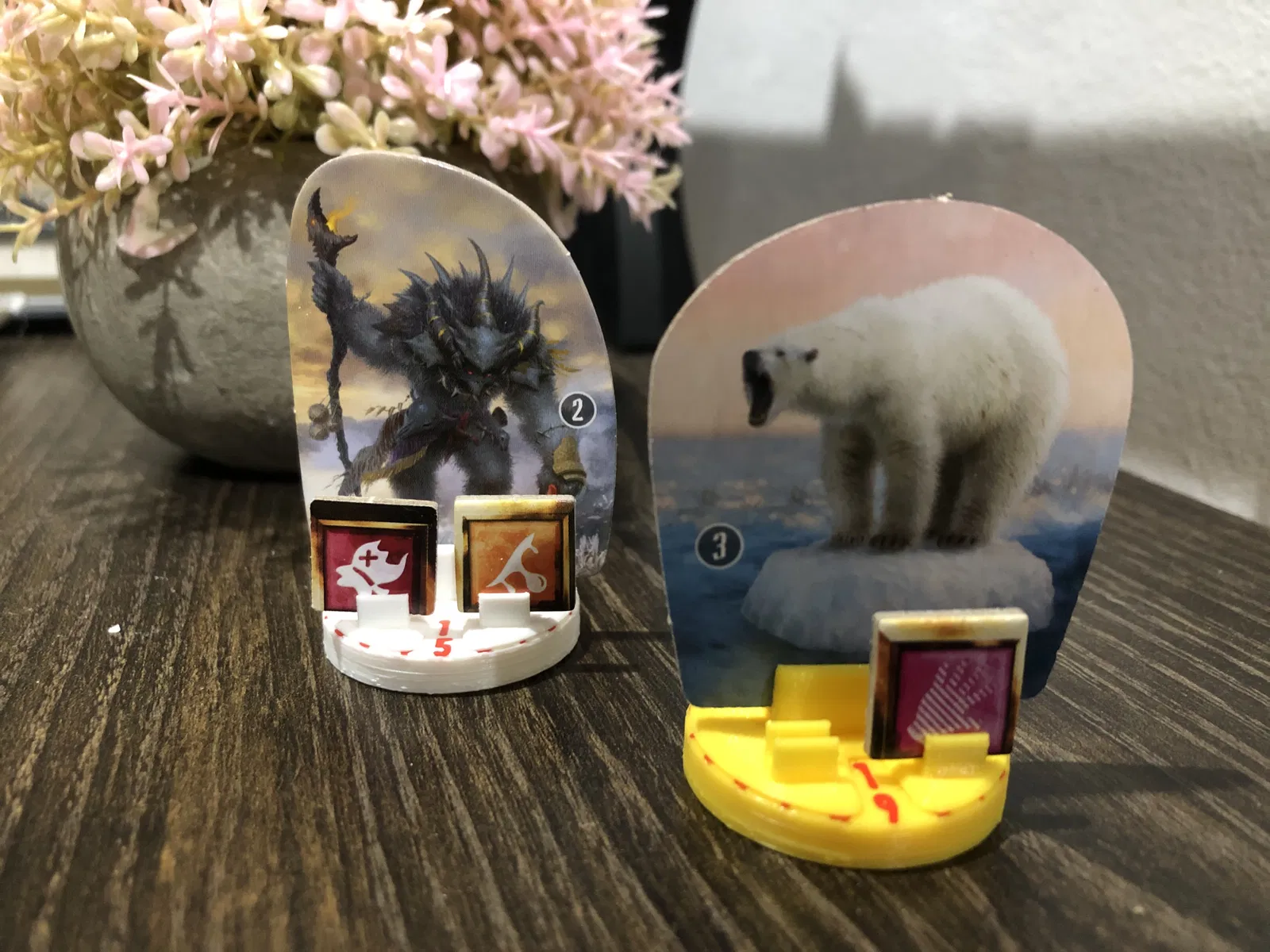 Phiên bản chỉnh sửa của chân đế hộp đếm Frosthaven, bổ sung thêm bốn khe để giữ các thẻ bổ trợ (modifier tokens). Giúp quản lý game dễ dàng hơn, giữ mọi thứ gọn gàng trên bàn chơi.