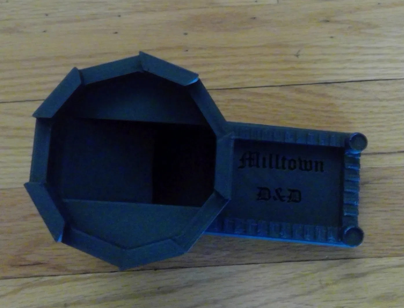Đây là một cái tháp đổ xúc xắc mình thiết kế cho câu lạc bộ D&D ở chỗ mình, và cũng là vật thể 3D đầu tiên mình đăng lên mạng đó. Nó hoạt động hiệu quả bất ngờ, và giúp hạn chế gian lận khi đổ xúc xắc nha.