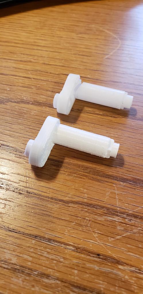 Tôi nghĩ rằng nên in bộ phận này với trục dài hướng xuống khay in để mặt trên sạch sẽ sẽ là bề mặt tiếp xúc với cánh tay nylon nối với thân quạt. In với trục hướng lên có thể sẽ ít tốn vật liệu hỗ trợ hơn, nhưng chất lượng bề mặt tiếp xúc có thể sẽ bị ảnh hưởng.