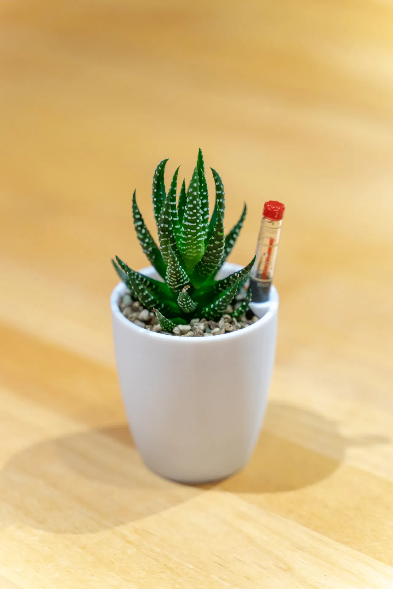 Đây là một chậu cây nhỏ, tự tưới nước có chỉ báo mực nước. Dung dịch tưới nước nằm ở đáy. Một sợi dây nhỏ sẽ chuyển nước lên đất.