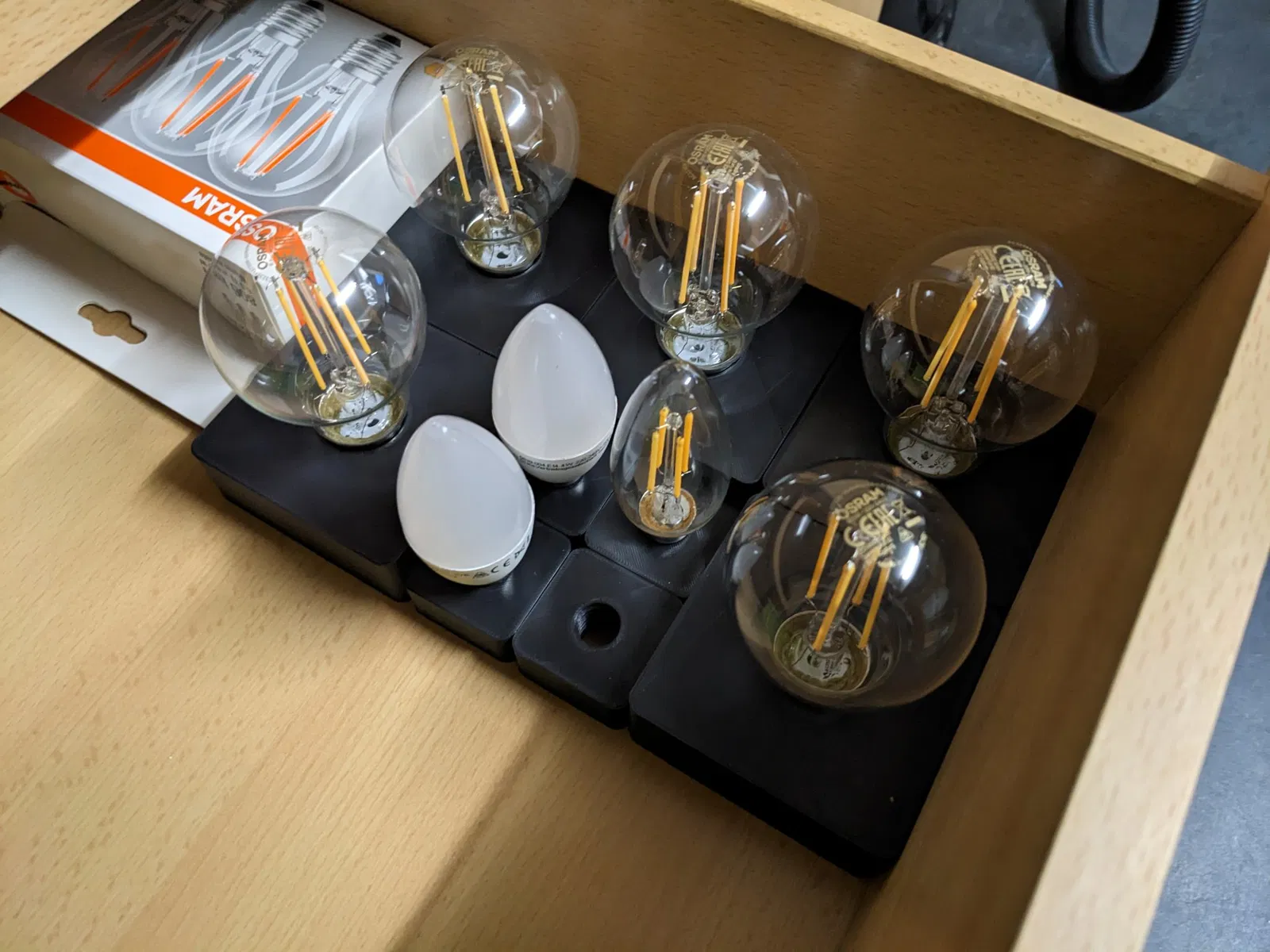 Giới thiệu giải pháp lưu trữ hoàn hảo cho bóng đèn của bạn - một bộ khối hình chữ nhật với các ren E27 và E14!