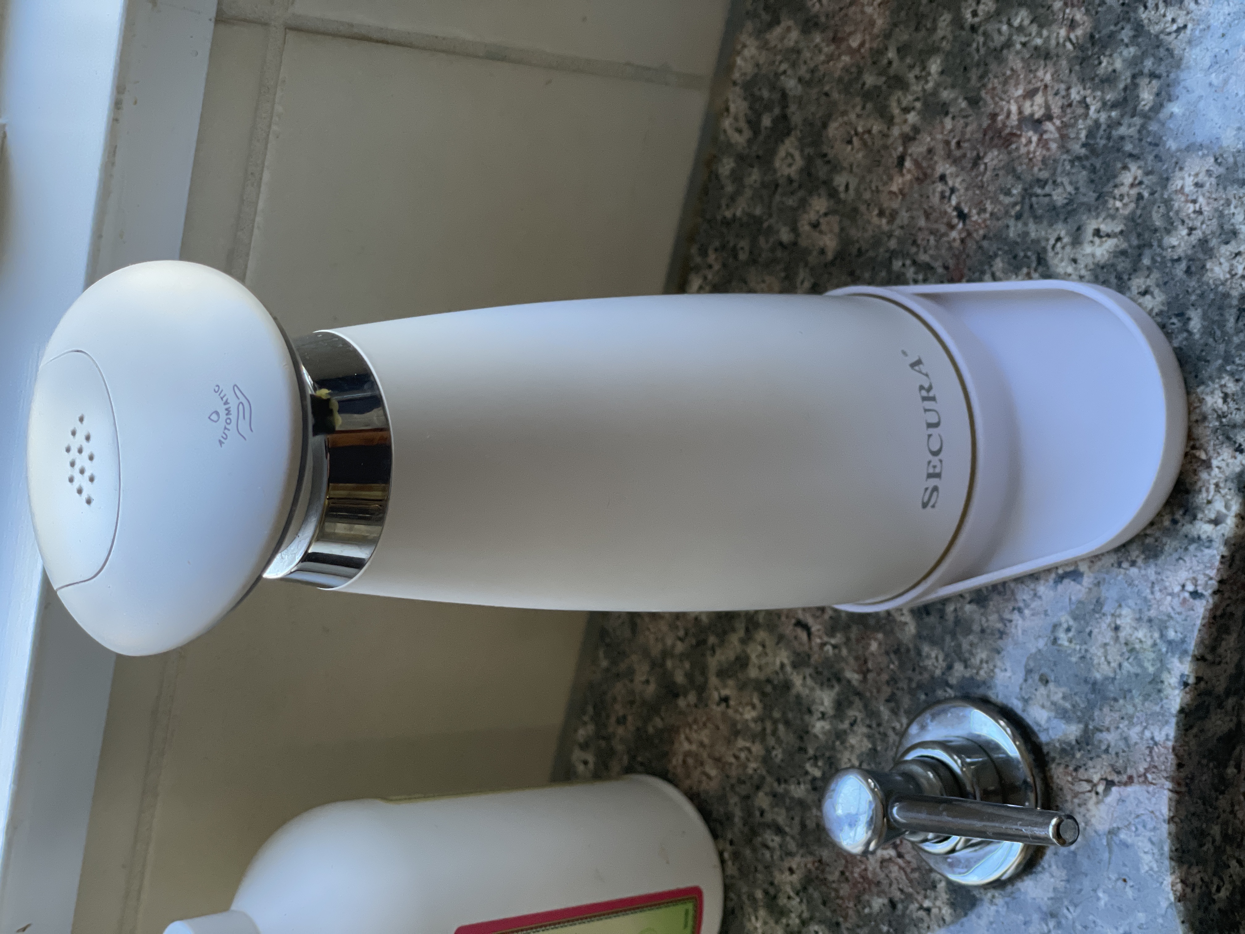 Đợt dịch COVID vừa rồi, tui có sắm hai cái máy phun xà phòng tự động Secura. Mặc dù nó ít khi bị rỉ nước lắm nhưng mà tui vẫn muốn có cái gì đó hứng mấy giọt nước lỡ có chảy ra.