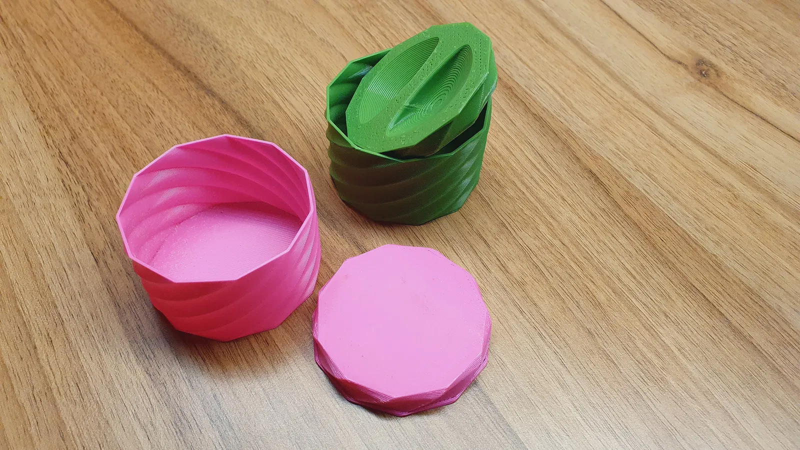 Hộp xoắn có nắp, kèm theo file f3d và step để bạn tùy chỉnh. Thích hợp làm hộp đựng đồ, lưu trữ với thiết kế độc đáo.