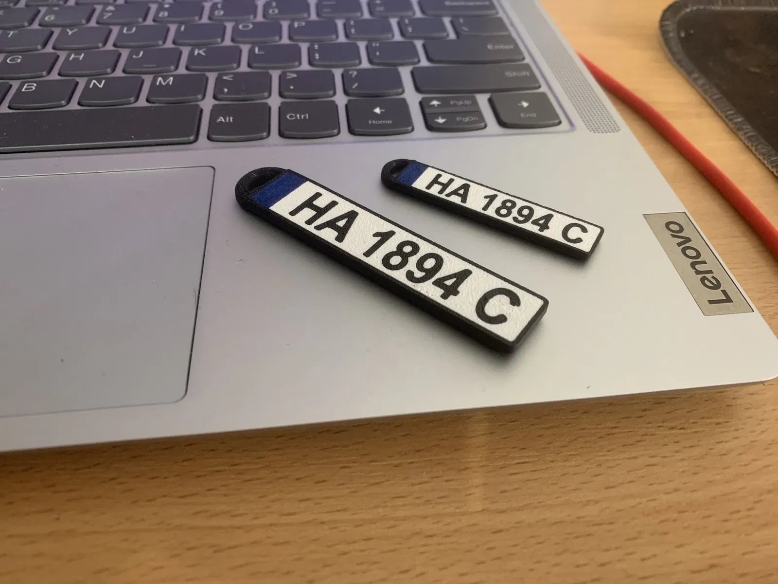 Tui muốn in cái này úp xuống với nhiều màu sắc và có lỗ móc khoá xịn sò hơn. Mấy cái chữ trên cái bảng số xe này tui có sửa lại chút đỉnh cho nó giống cái định dạng bảng số xe của Bulgaria, còn mấy ông bà muốn sửa sao cũng được nha. Cái lỗ móc khoá nó có bo tròn với hay bị cong vênh nên mấy ông bà nhớ in bằng brim hoặc chỉnh nhiệt độ bàn in cao lên chút nha.