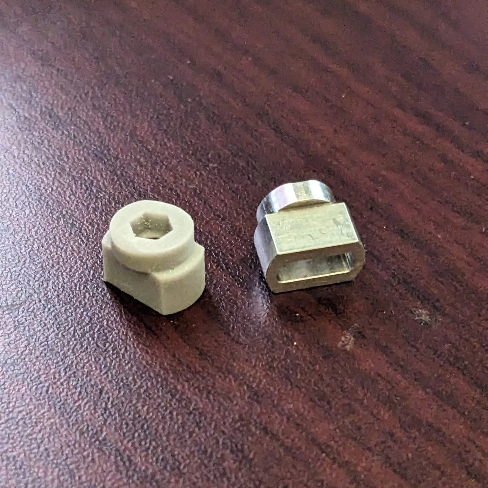Sếp tui biểu in cái cục nhựa thay cho cái bộ phận hay bị hư trong cái JC AP-VMA1420-700. Cái này là cái đầu tiên tui tự làm với in ra luôn đó. In ra ngon lành, xài được luôn. Cái cục zin nằm bên phải, còn cục tui in bằng resin chắc chắn thì nằm bên trái (chưa có dọn mấy cái mụn thừa sau khi in).