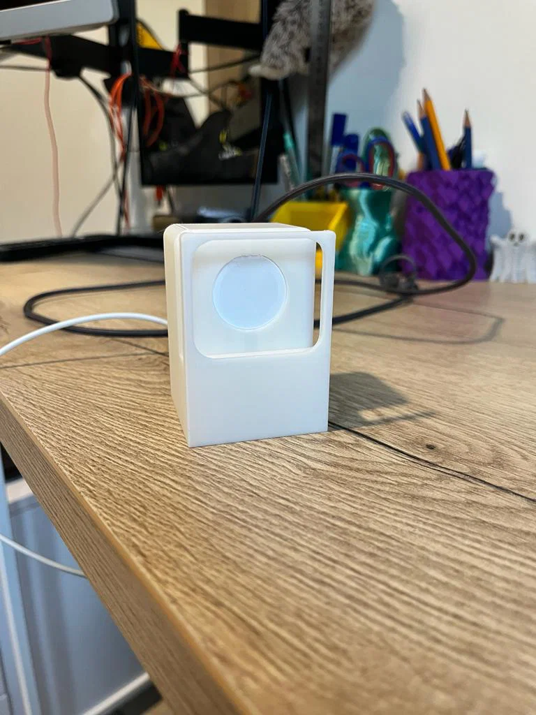 Mô hình chân đế sạc Apple Watch SE 44mm. Chỉ cần đặt cục sạc vào là xong, rồi trượt Apple Watch vào để sạc thôi. Có thể quấn dây sạc gọn gàng khi không dùng tới. Nhớ in kèm support nha anh em.