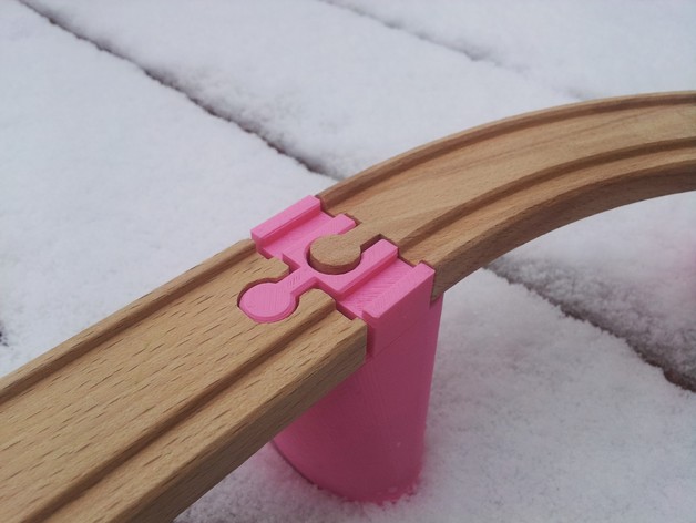 Cây cầu/đường trên cao cho xe lửa đồ chơi bằng gỗ này được thiết kế bằng thư viện tracklib.scad. Tái sử dụng với các file đã tách rời tiện lợi cho việc in ấn. Tương thích với các bộ ray xe lửa phổ biến.