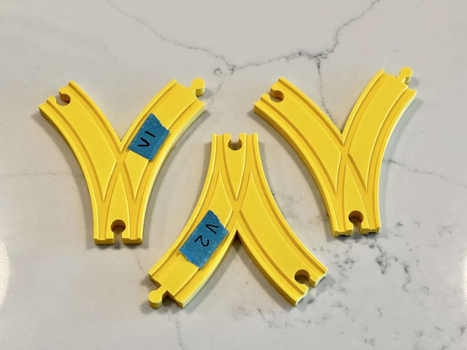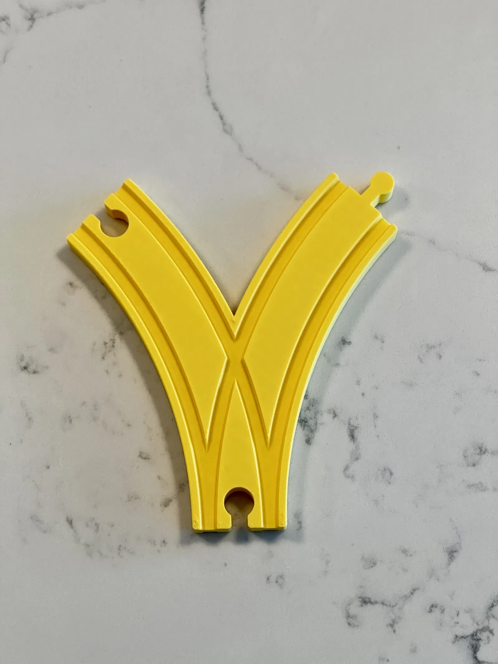 Đầu nối ngã ba tách tùy chỉnh được thiết kế để tạo vòng lặp trên đường ray tàu hỏa Brio/IKEA. Đã thử nghiệm và hoạt động tốt trên đường ray Brio, các đầu nối đã được chỉnh sửa để khớp và đường ray có thể đảo chiều.