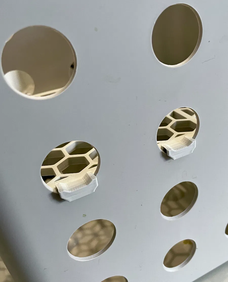 Nó được thiết kế để các móc vừa vặn hoàn hảo ở tầng thứ ba. Nếu bạn muốn chỉnh sửa để vừa cao hơn hoặc thấp hơn, bạn có thể sử dụng liên kết TinkerCad của tôi: https://www.tinkercad.com/things/40qKhtqndhn-ikea-hallbar-compost-bag-level-insert