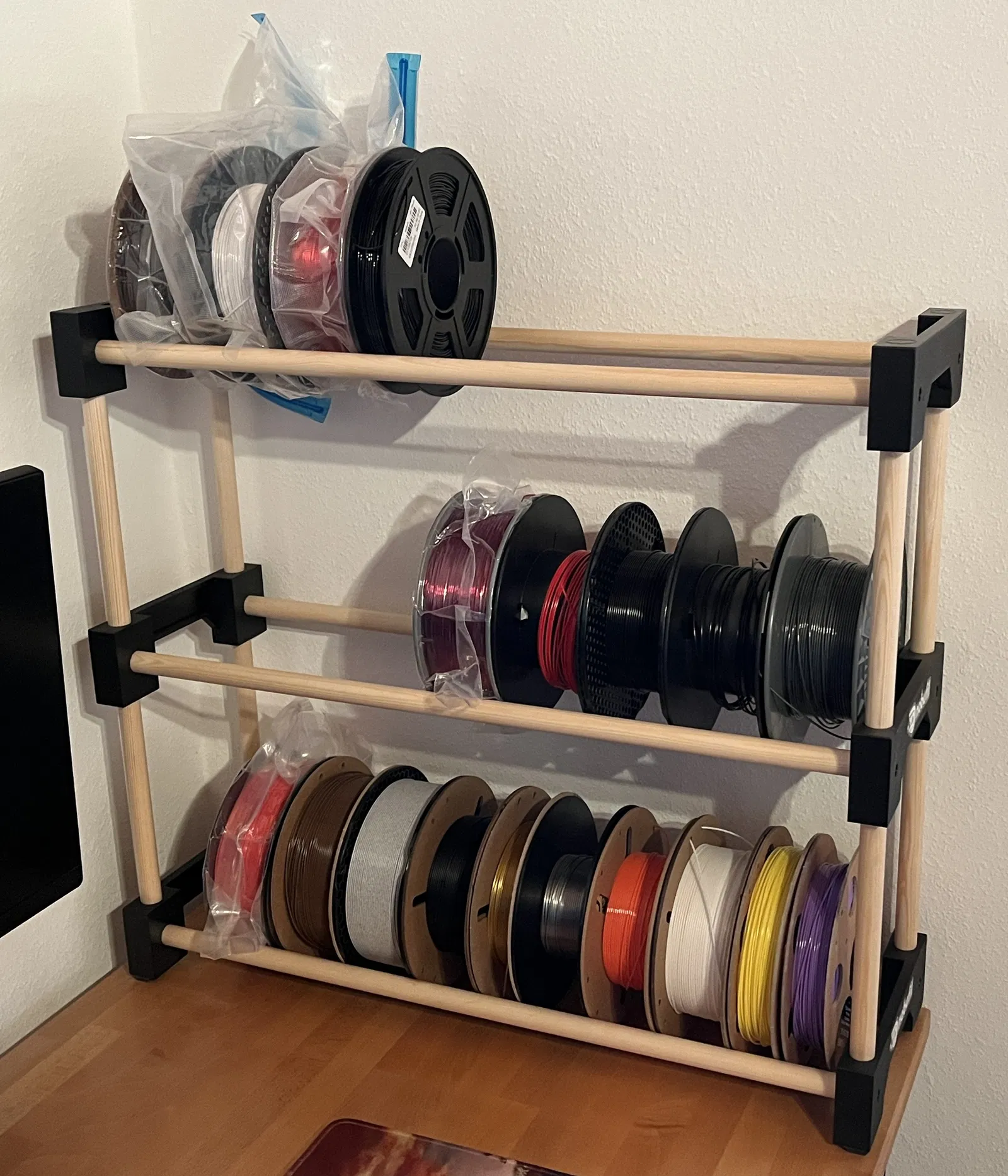 Giá đỡ cuộn dây Modunar, dễ in hơn và có lỗ tùy chỉnh theo kích thước thanh tròn. Tạo lại mới hoàn toàn bằng Fusion360. Hầu hết các bộ phận không cần hỗ trợ khi in. Ví dụ dùng thanh 20mm, ốc 4x60mm.