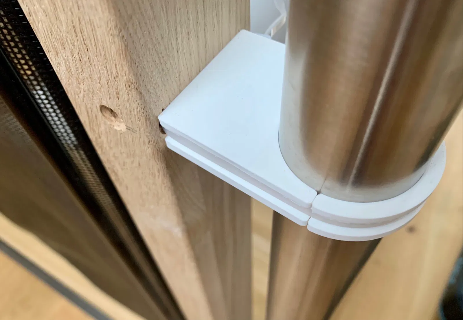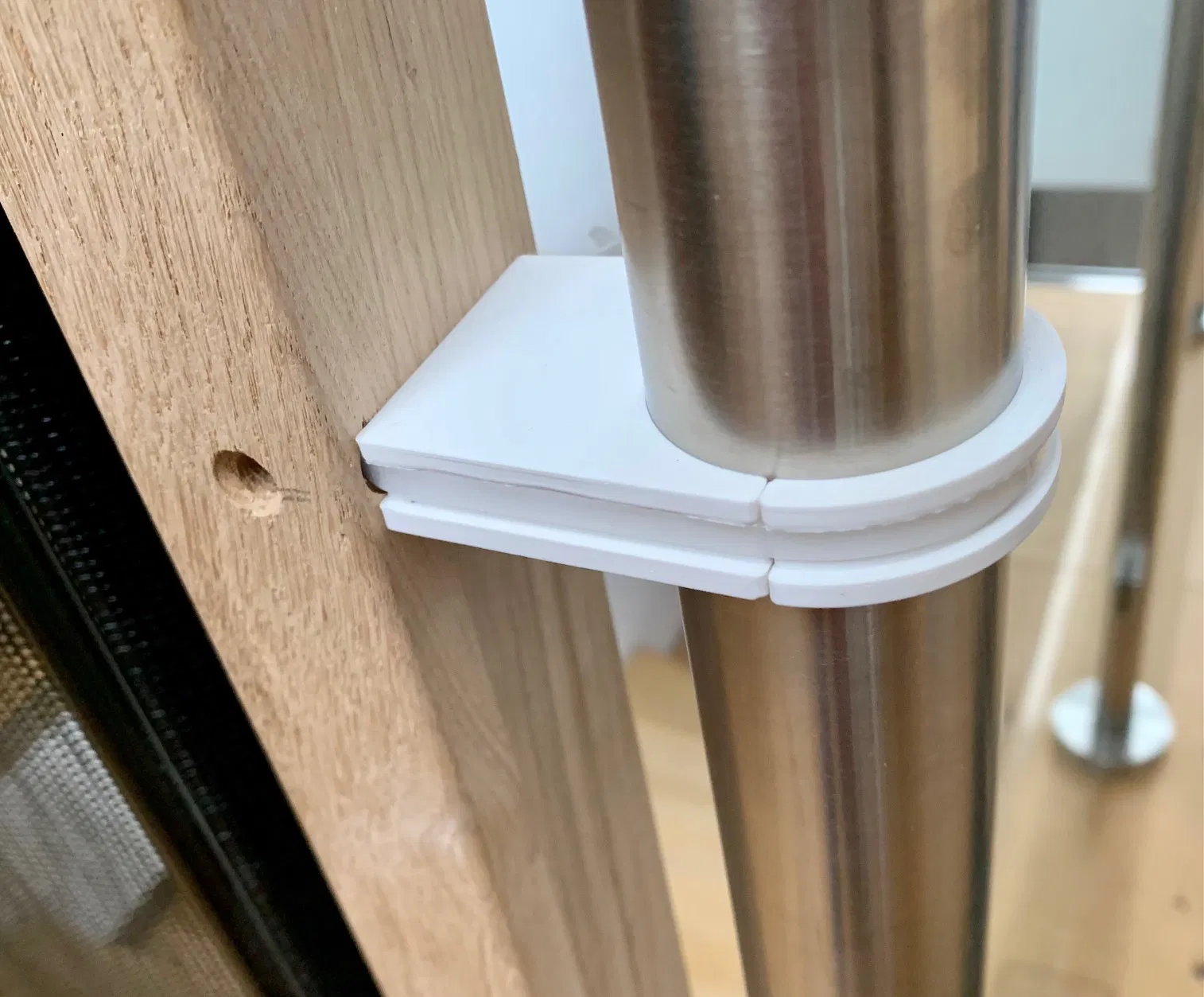 Chêm đệm (spacer) cho thanh chắn an toàn cầu thang của ABUS(R). Dùng dây rút nhựa (4.8mm) để gắn vào cột trụ Inox (VA) có đường kính 42.4mm. Sản phẩm giúp cố định thanh chắn chắc chắn, đảm bảo an toàn cho bé.