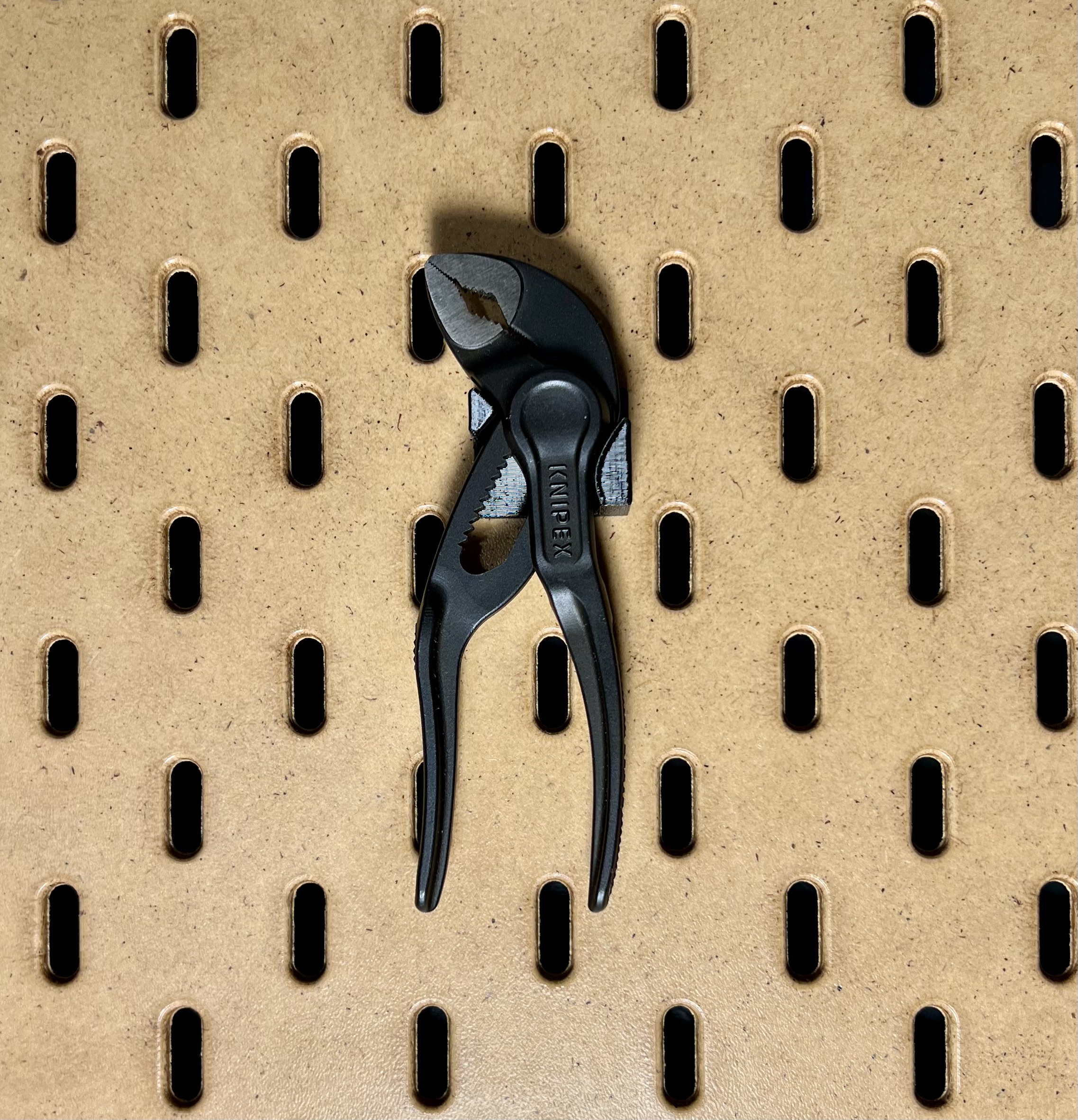 Giá đỡ nhỏ cho Knipex Cobra XS. Vừa với bảng pegboard SKÅDIS của IKEA. Cần in với support. Lưu ý: Cẩn thận khi treo đồ nghề này và đảm bảo pegboard được gắn chắc chắn vào tường.