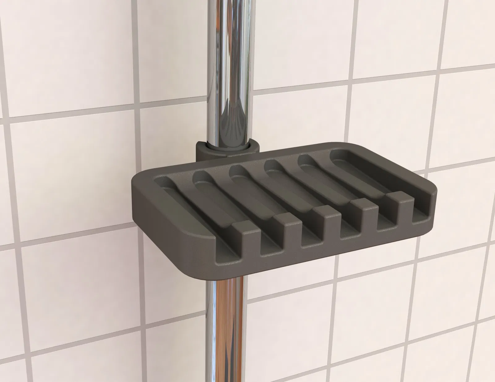 Khay đựng xà bông đơn giản, có rãnh thoát nước và giữ xà bông hoặc các vật dụng phòng tắm khác. Dễ in, không cần support. Có thể dùng với kẹp hoặc không, phù hợp cho cả phòng tắm và bồn rửa mặt.