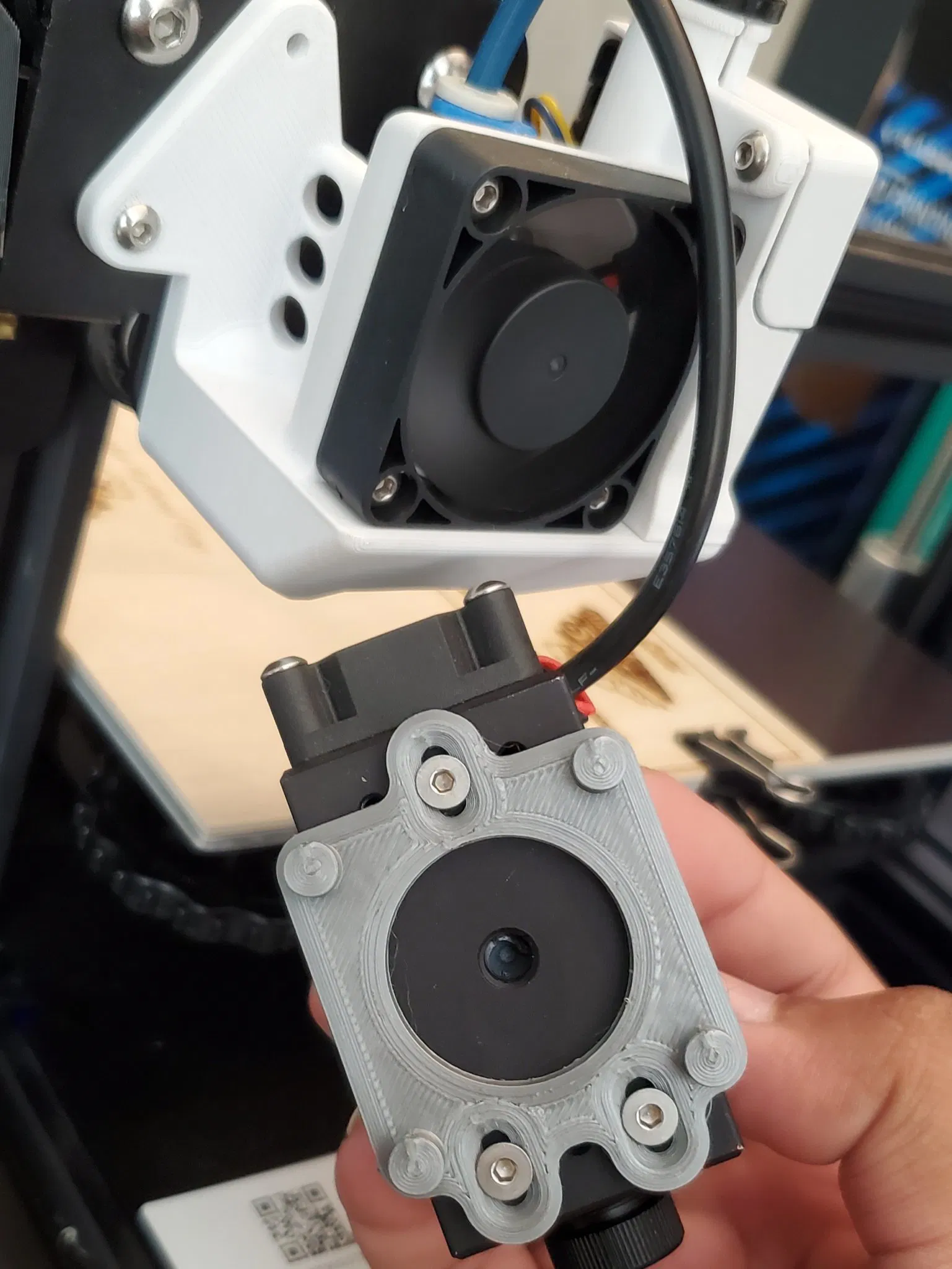 Làm cho khung này vặn vít vào mô -đun laser creality và gắn vào quạt kết thúc nóng cổ phiếu. Ma sát phù hợp.