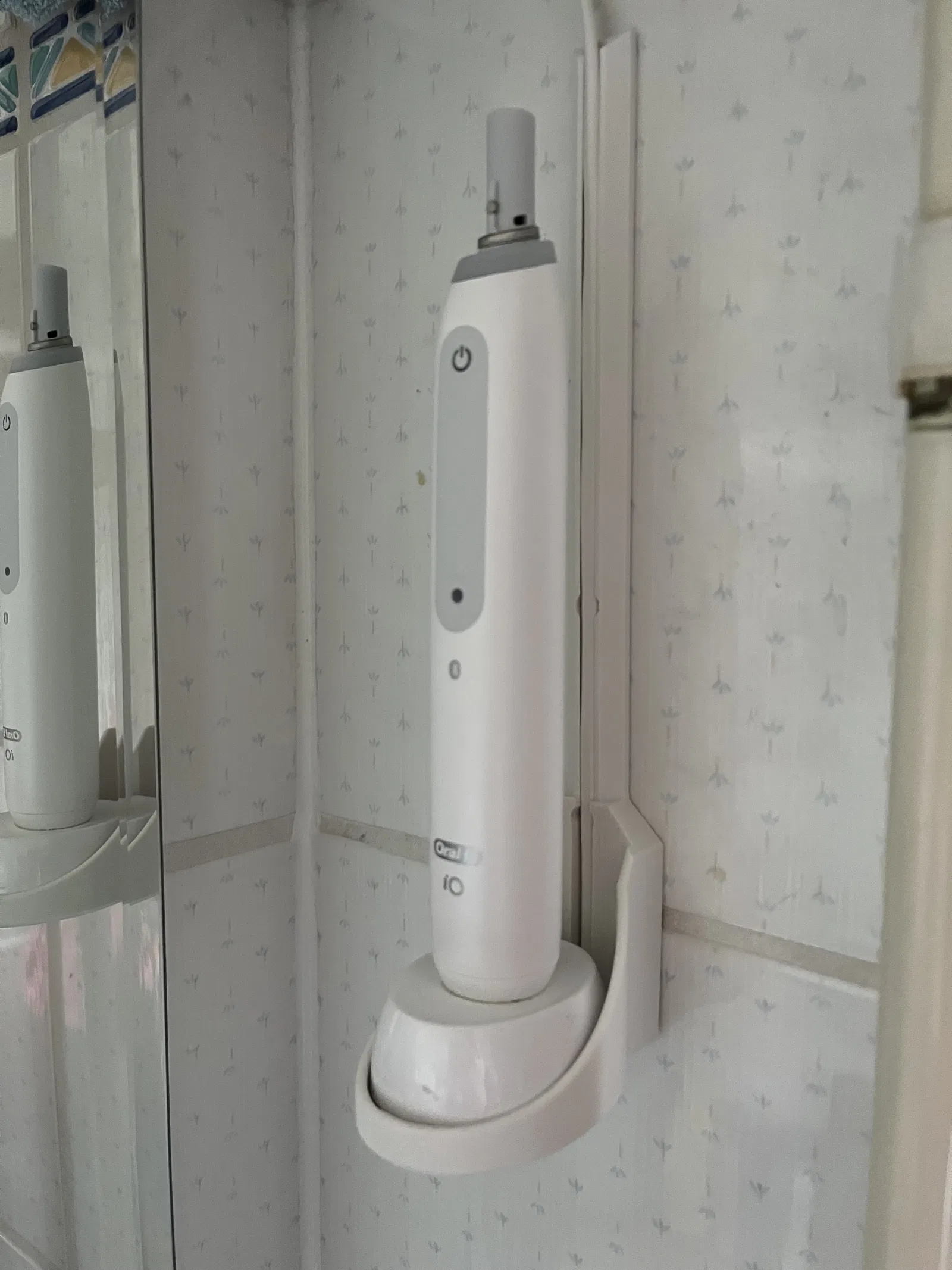 Giá treo tường chuyên dụng cho bàn chải điện Oral B loại iO. Thiết kế thông minh với khe dẫn dây sạc giúp giữ bàn chải gọn gàng và tiện lợi trên tường.