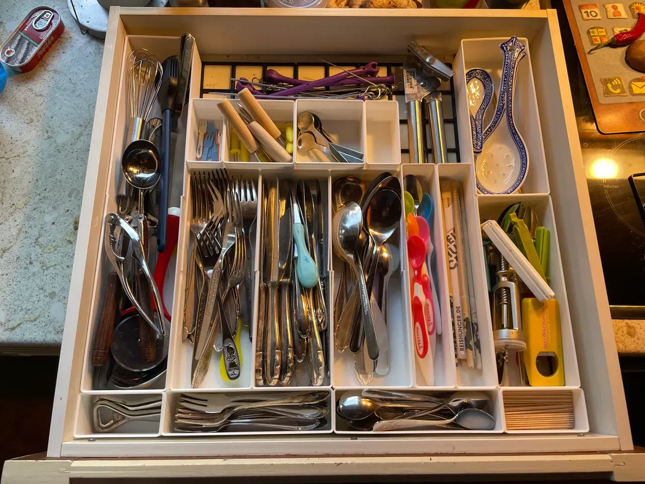 Có lẽ bạn không muốn đi theo con đường của những bộ Tổ chức Dao nĩa chuyên dụng nhưng chỉ muốn sử dụng Hệ thống Gridfinity Mở của Zack Freedman để sắp xếp dao nĩa của mình!
