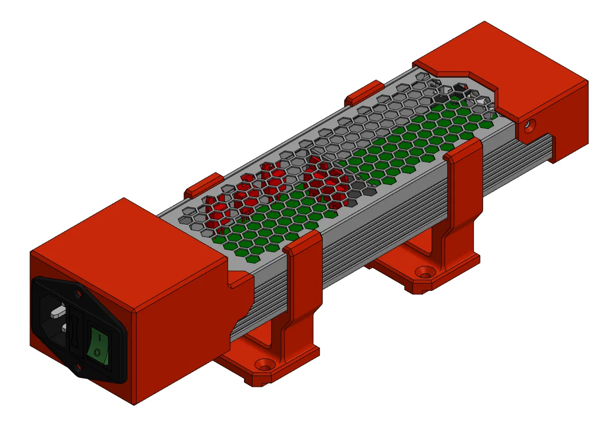 Giá đỡ bộ nguồn Meanwell UHP-350-24V, được thiết kế đặc biệt để kết hợp hoàn hảo với máy in 3D Ratrig V-Minion. Phiên bản V2 đã cập nhật vị trí lỗ và công tắc nguồn xoay, tối ưu hóa việc lắp đặt và sử dụng.