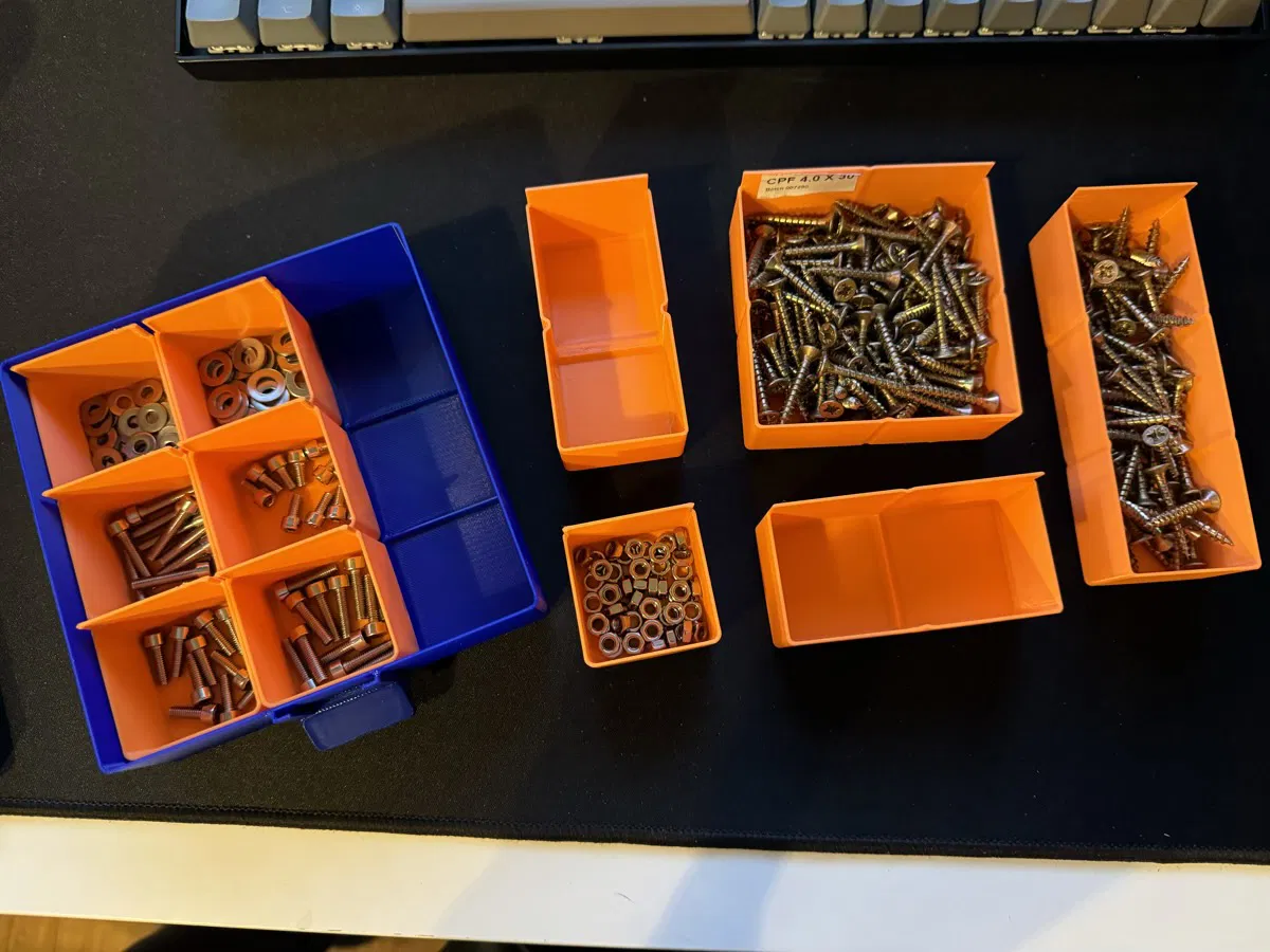 Tuyển tập các hộp và hộc tủ để sắp xếp đồ vật nhỏ gọn. Như ốc, vít, và các vật dụng linh tinh khác. Kích thước hộp 40x40mm, có nhiều kích cỡ và hộc tủ 3x3 tiện lợi.