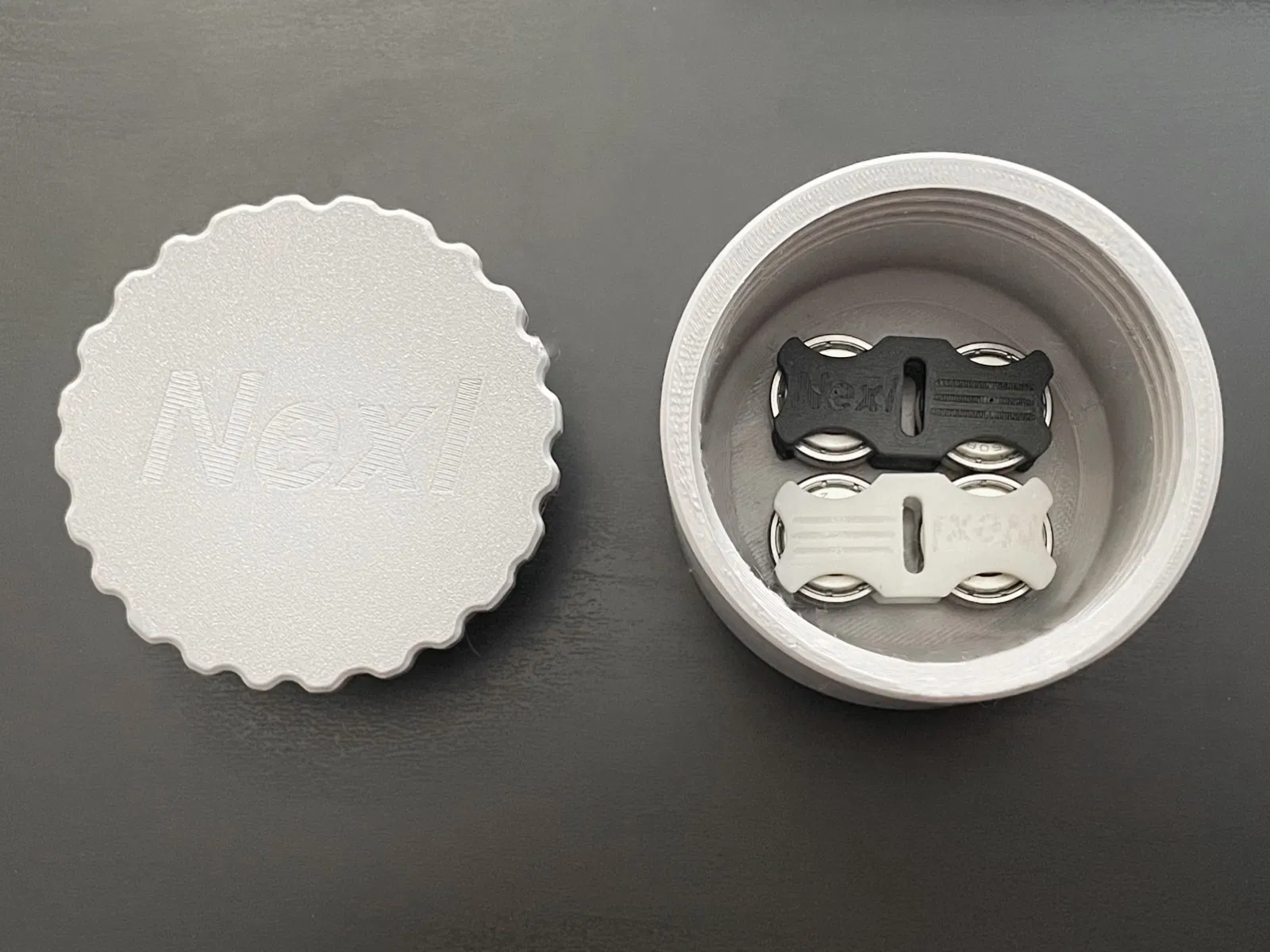 Bộ phận giữ vòng bi để vệ sinh vòng bi trong dung dịch tẩy rửa. Khuyến khích sử dụng vật liệu kháng hóa chất để in vì dung dịch tẩy rửa có thể gây hại cho nhựa thông thường.