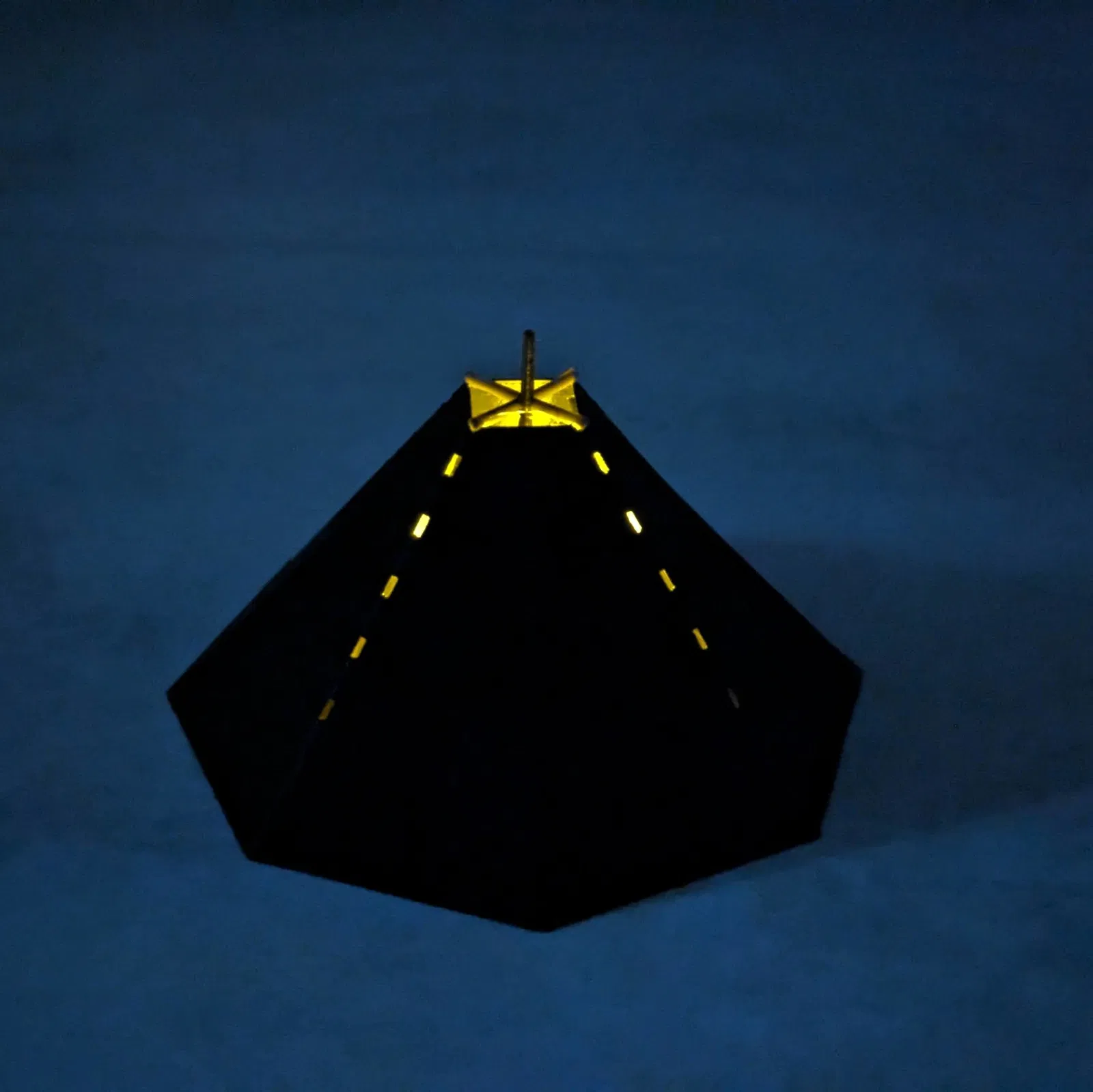 Dựa trên kích thước của một chiếc "Kohte" - lều truyền thống của phong trào thanh niên và hướng đạo sinh Đức - tôi đã tạo ra một chiếc đèn nhỏ, hay đúng hơn là một vật thể chiếu sáng cho nến điện.