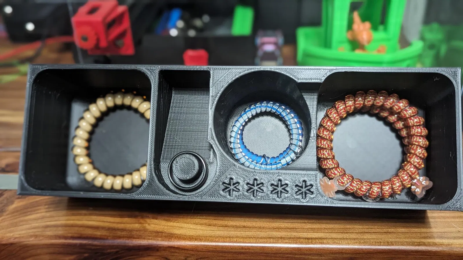 Bả nhà tui bị nhiều dây buộc tóc quá trời, nên bả muốn có chỗ để gọn gàng trong ngăn kéo.