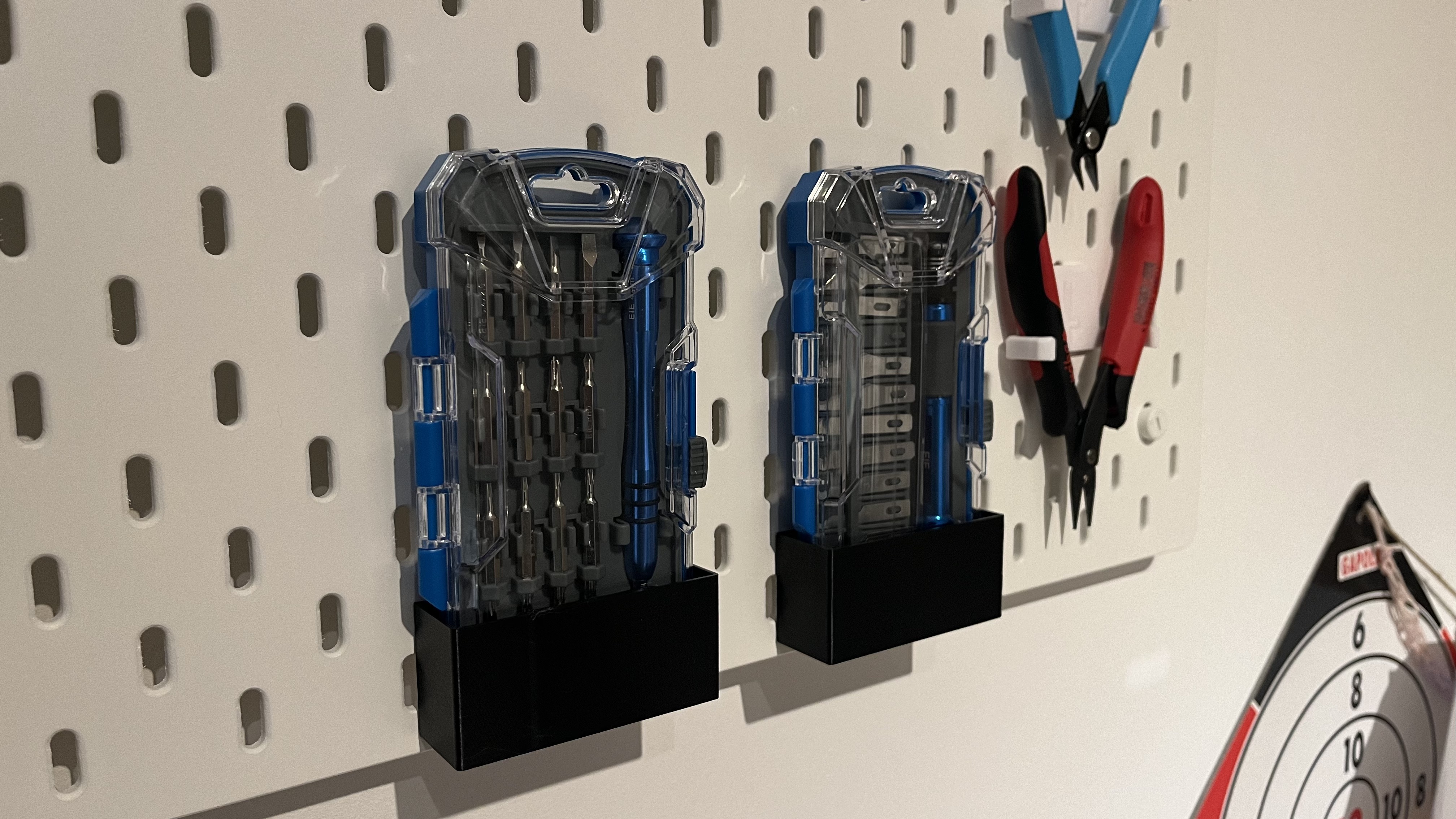 Đây là giá đỡ Skadis dành cho bộ dụng cụ ALDI Workzone. Bạn có thể sử dụng nó để đựng bộ mũi vặn vít hoặc bộ dao với lưỡi thay thế, giúp không gian làm việc của bạn gọn gàng và ngăn nắp hơn.