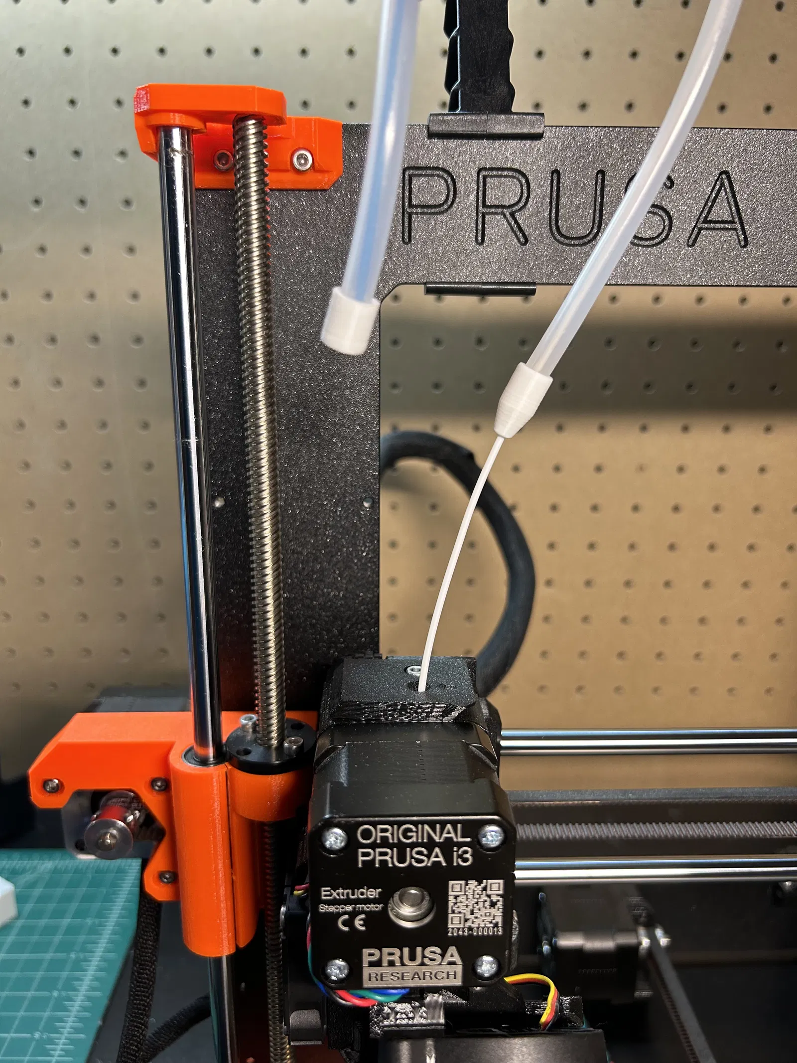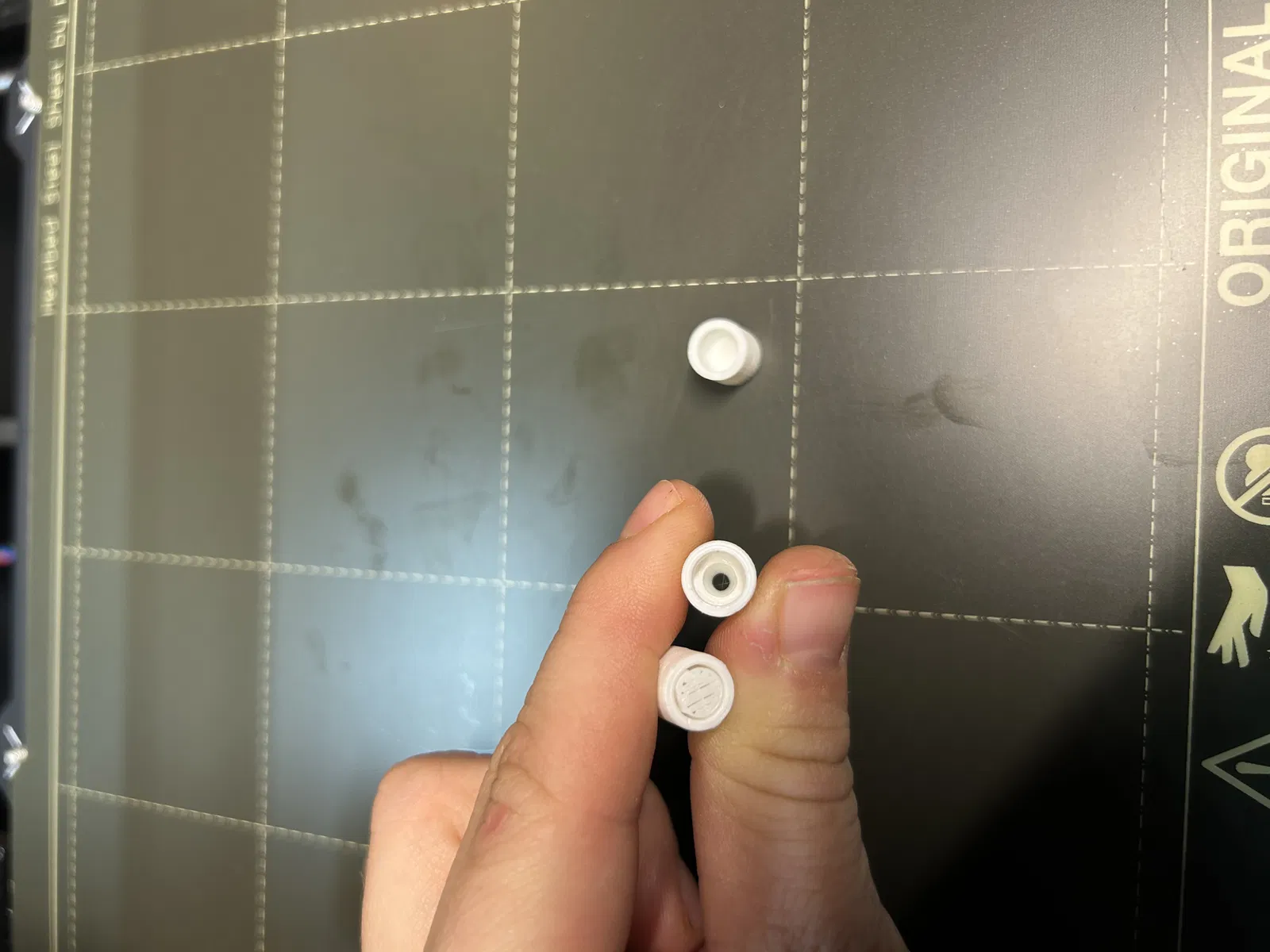 Một cái là nắp đậy cho ống có sợi nhựa chưa được nạp vào máy in. Hai nắp còn lại là dành cho sợi nhựa đã được nạp, một cái được thiết kế cho sợi nhựa 1.75mm đi qua và cái kia cho sợi nhựa 2.85mm đi qua. Đừng quên gỡ bỏ vật liệu hỗ trợ bên trong các nắp nhé!