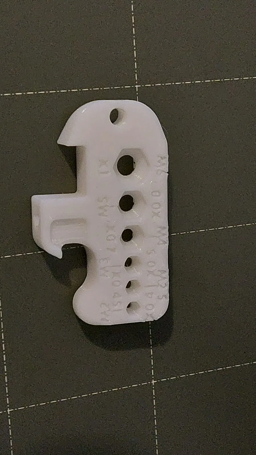 Để giảm kích thước của dụng cụ, tôi đã thêm các lỗ cho đai ốc ở mặt dưới của bản in và làm cho chữ ở mặt dưới bị lõm xuống để tránh dùng support và tốn màu in. Để tránh support, tôi đã thêm một đường vát bên trong các lỗ cho đai ốc.